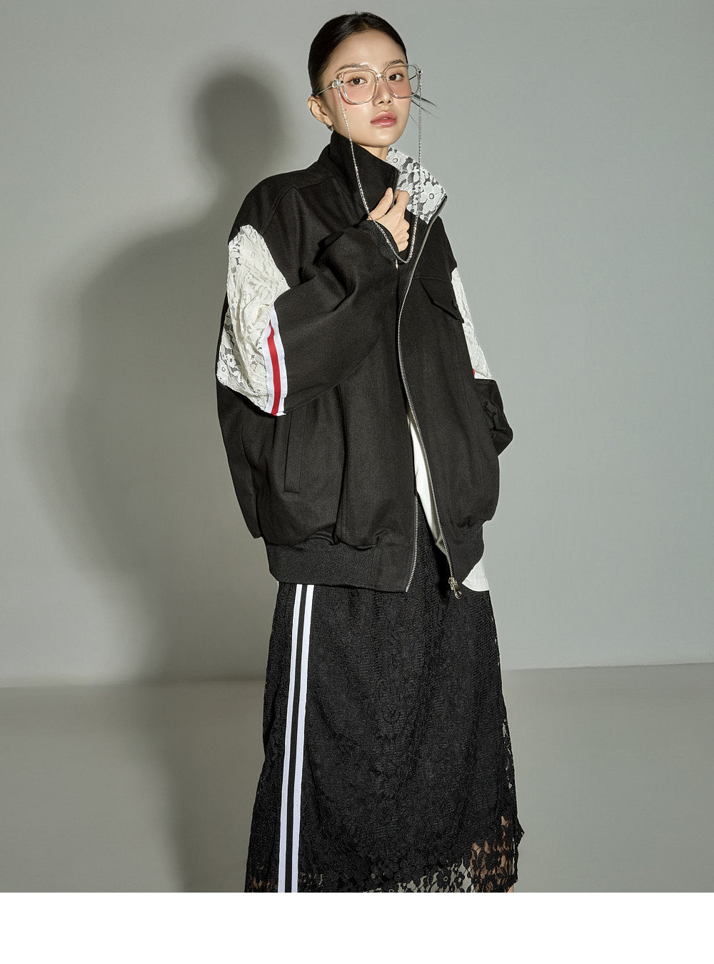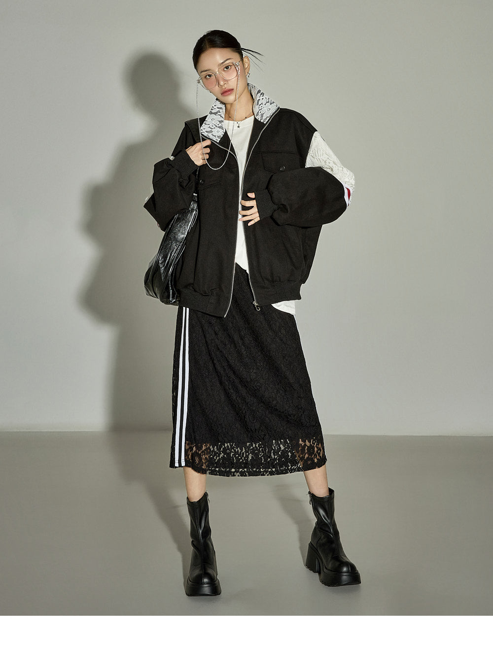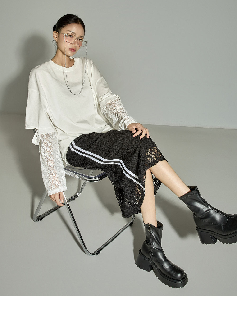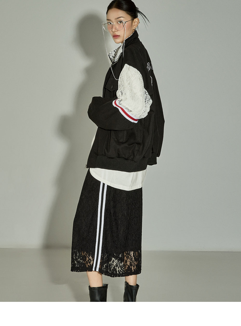 This lace contrast skirt has a casual vibe.