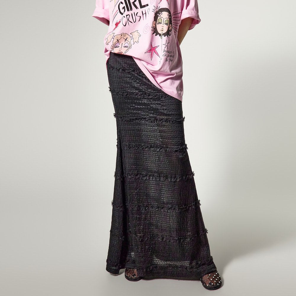 这是一款褶皱美人鱼半身裙,充满女性魅力。