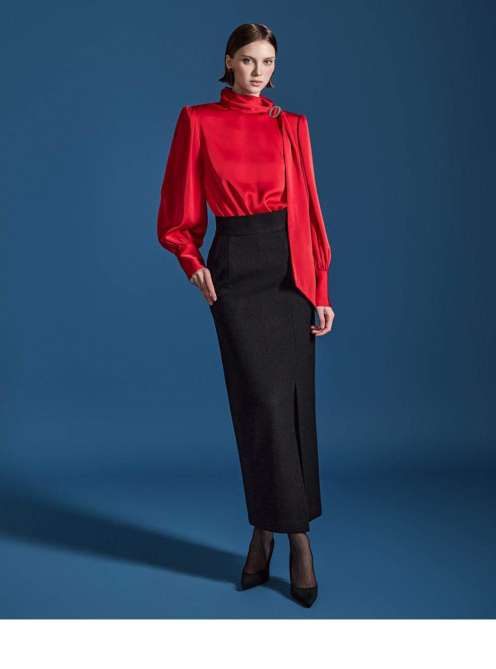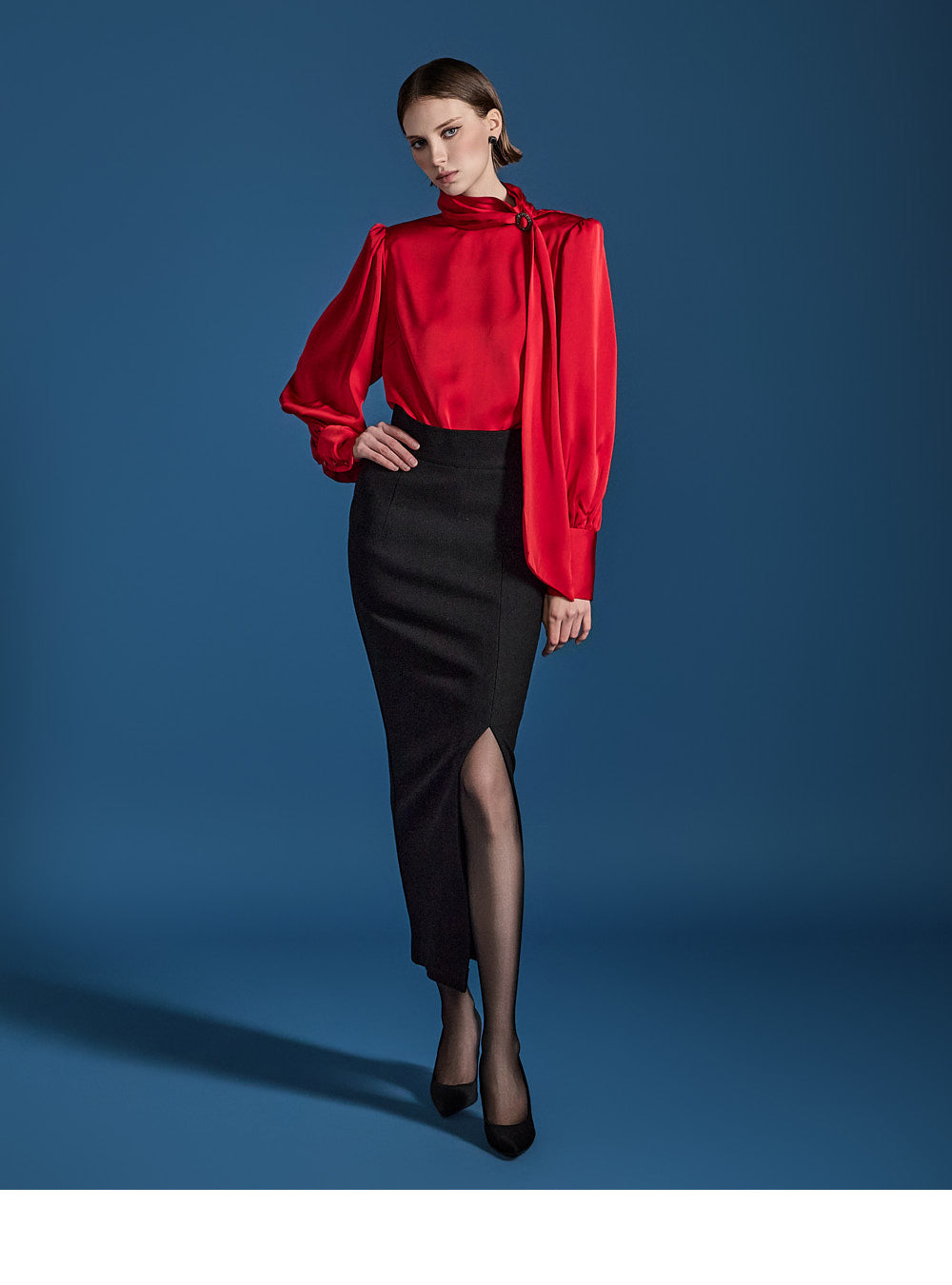 with a deep side slit detail that adds a sophisticated, chic silhouette.