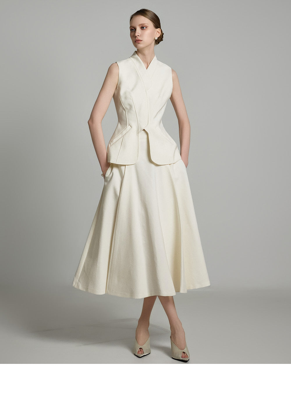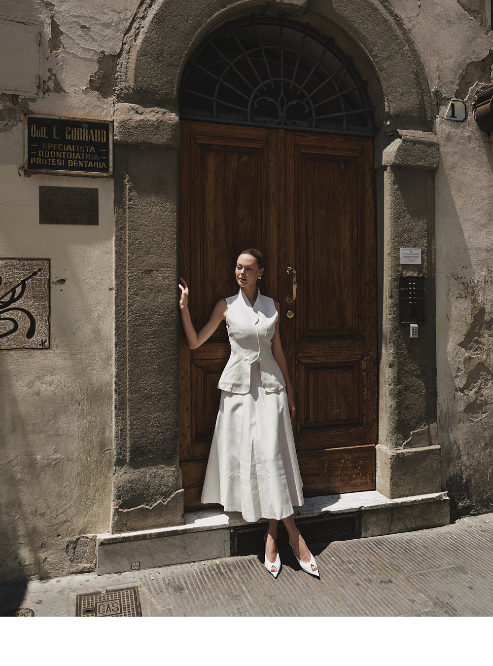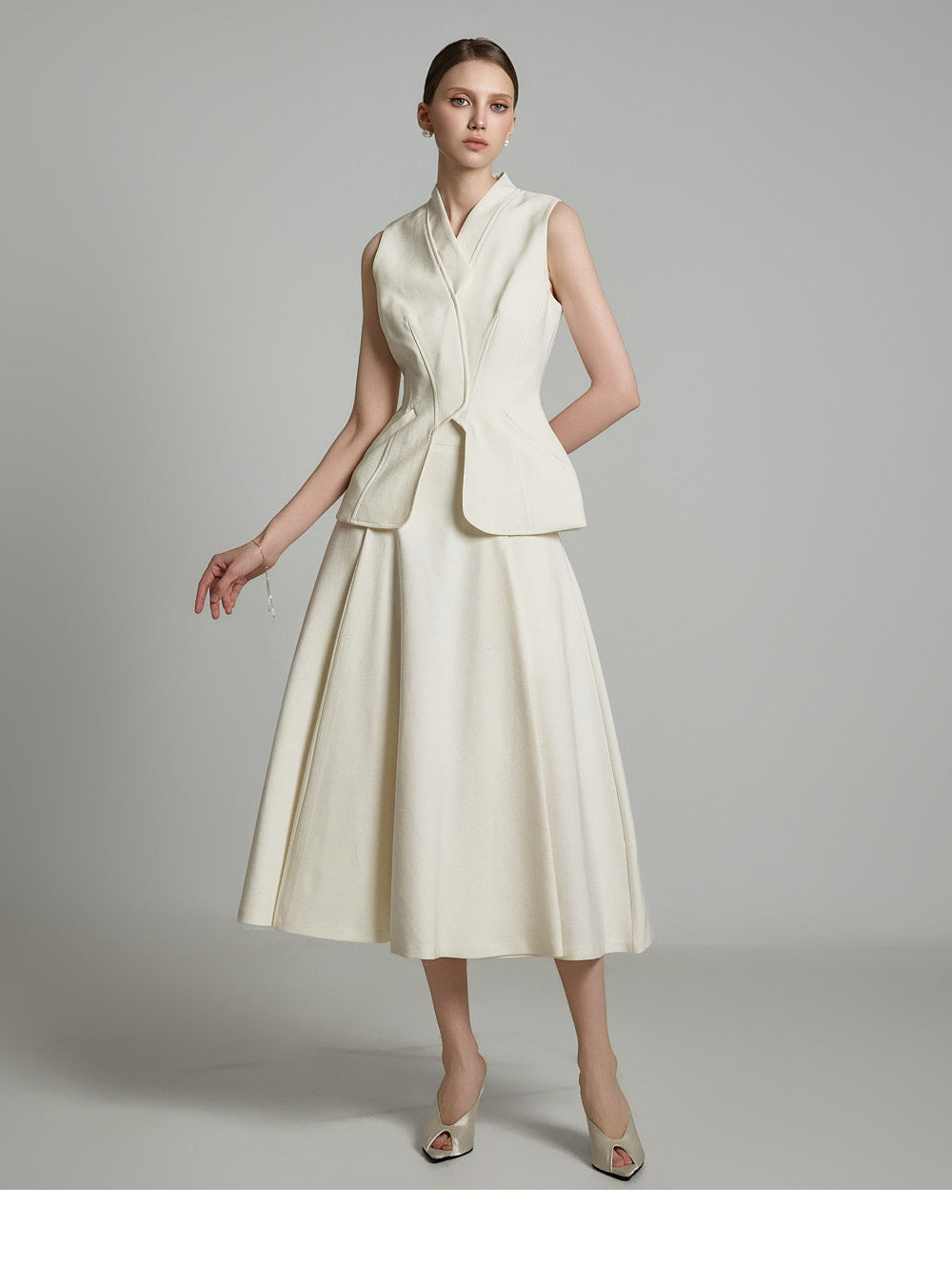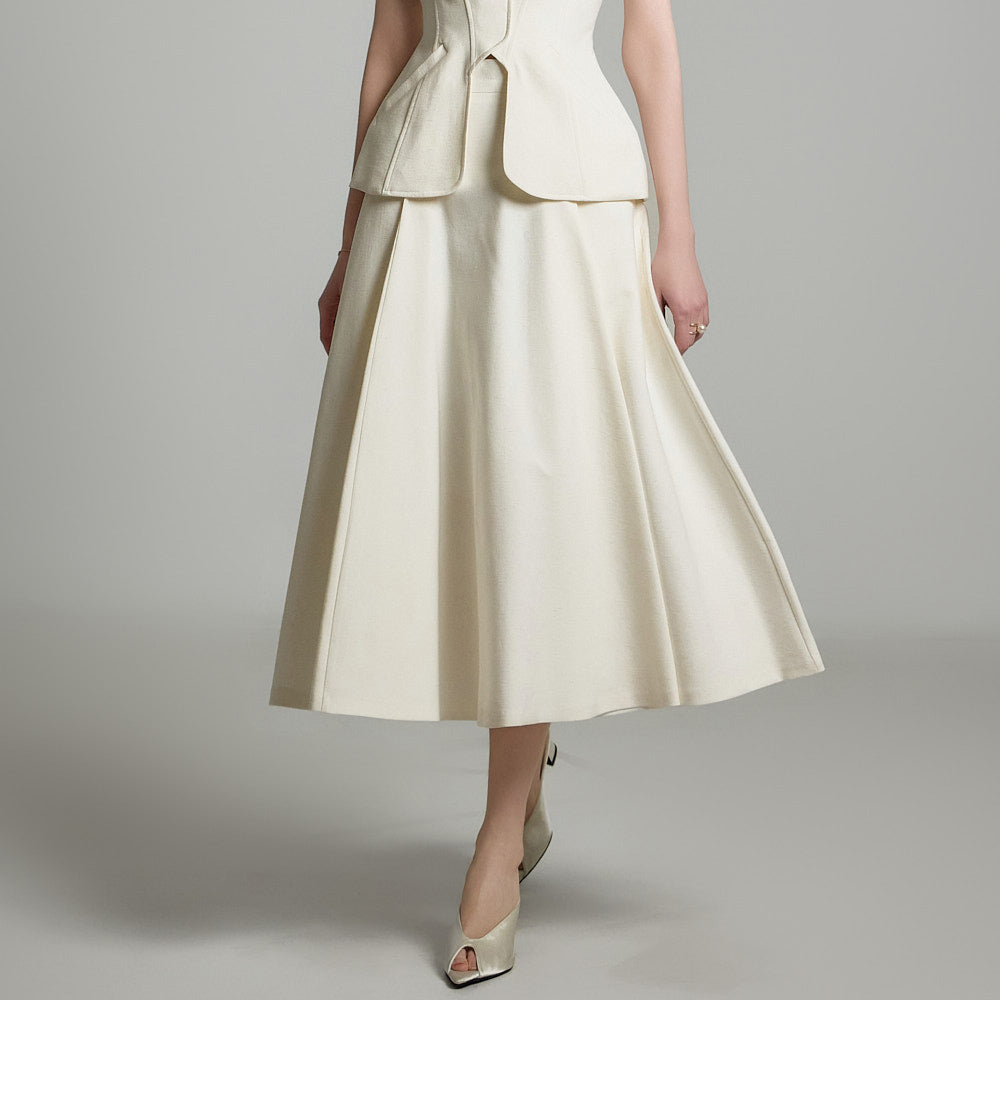 身高 174 厘米的模特穿着奶油色的 S 码。