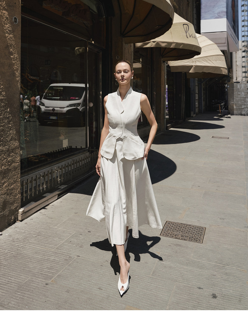 喇叭裤的廓形不仅能遮盖身材曲线,还能打造出充满女性魅力的造型。舒适的中长裤长度