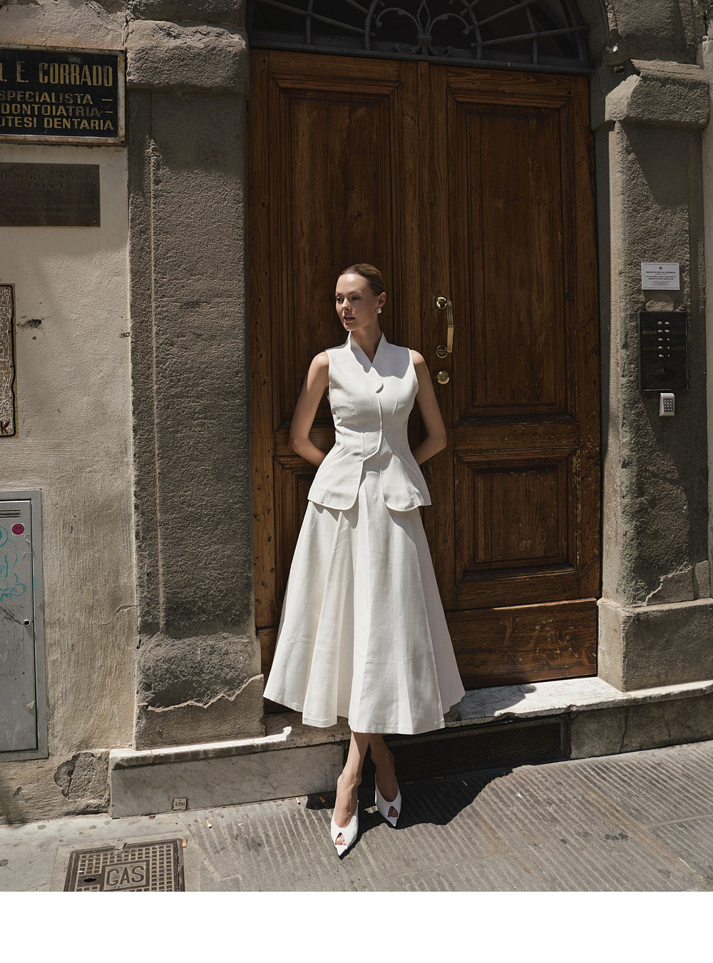 亚麻和人造丝混纺,有 S、M 尺寸可供选择。