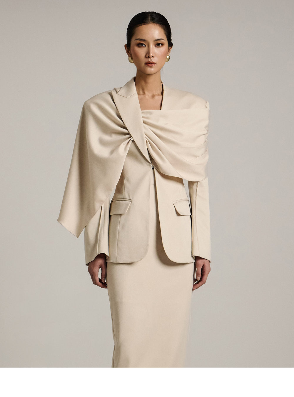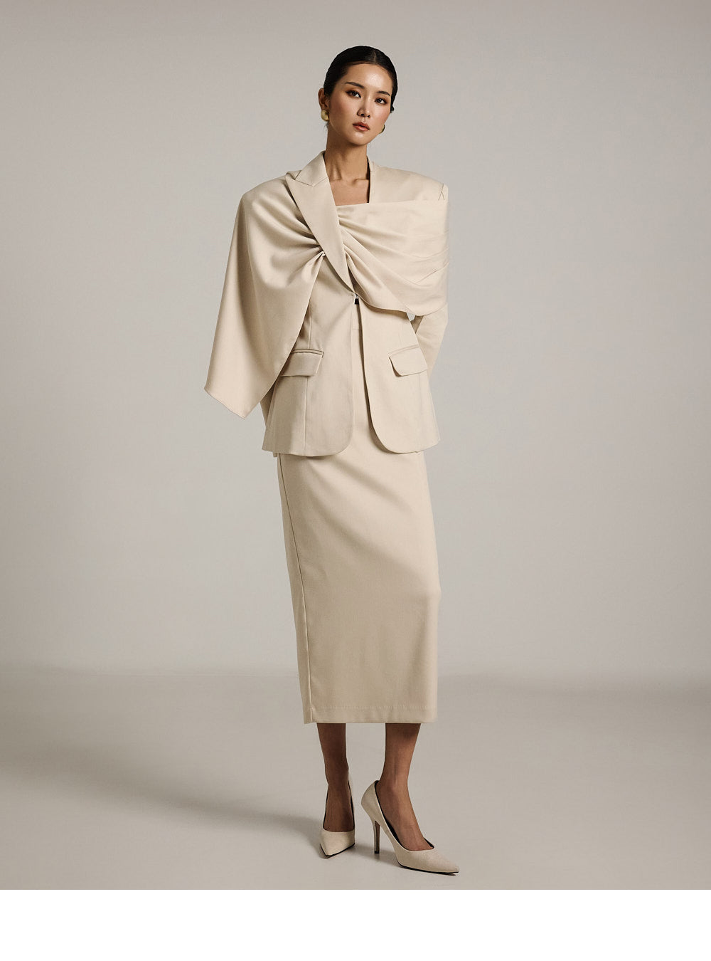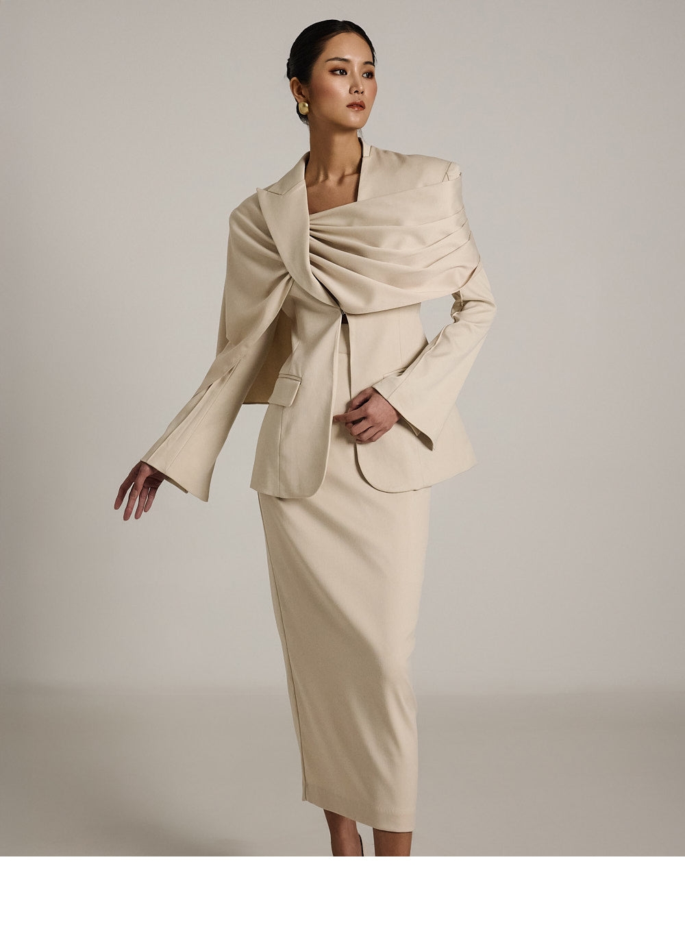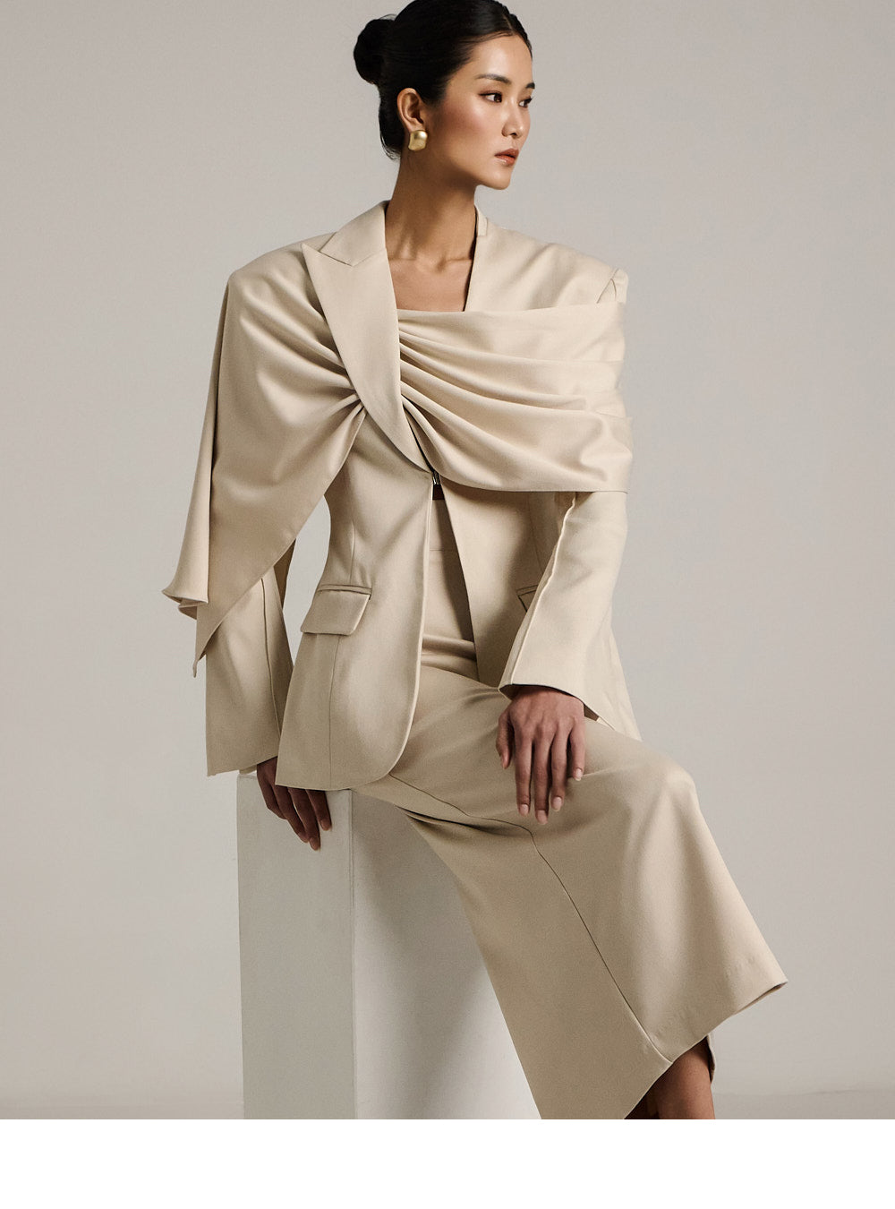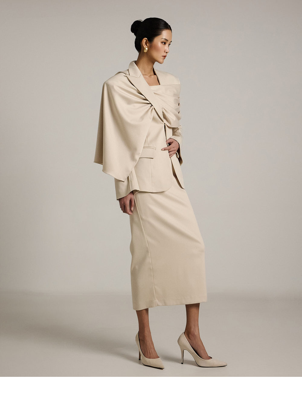 模特身高174CM,穿的是BEIGE尺码的S码。