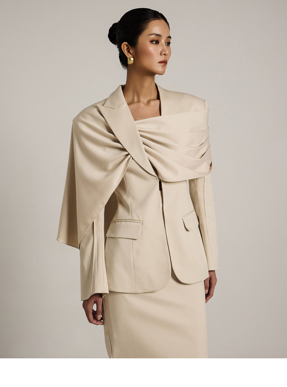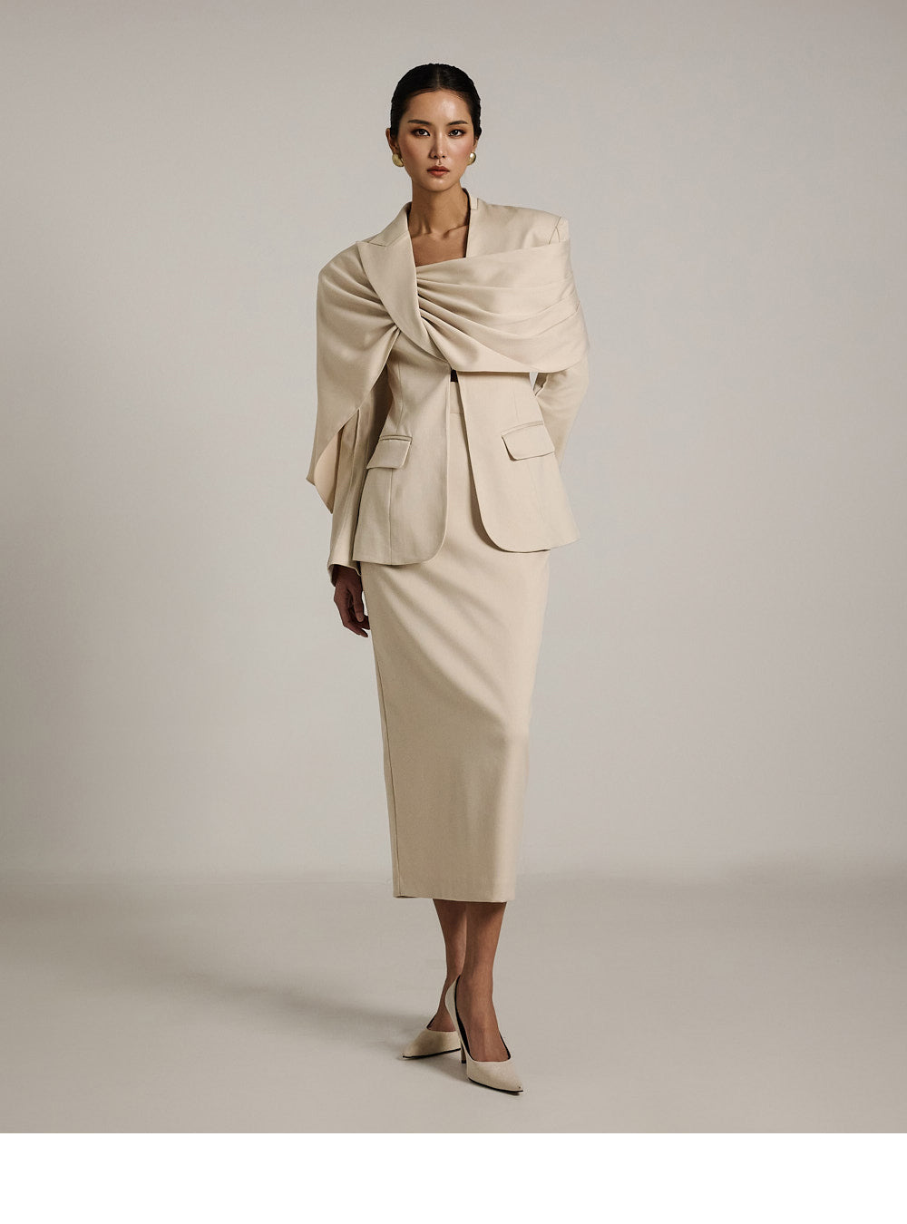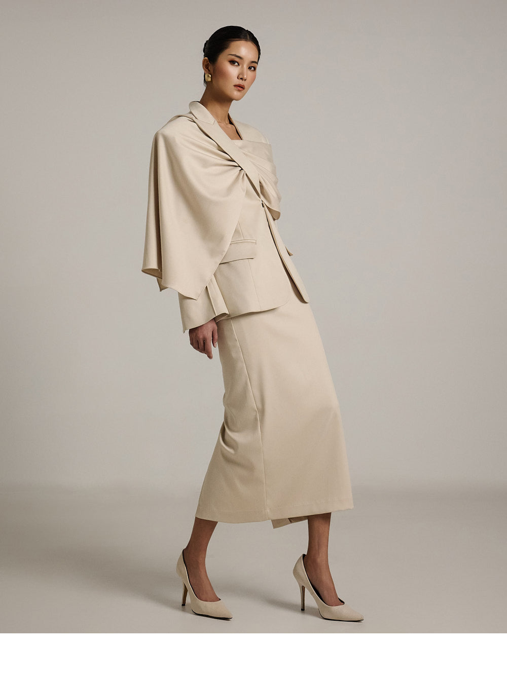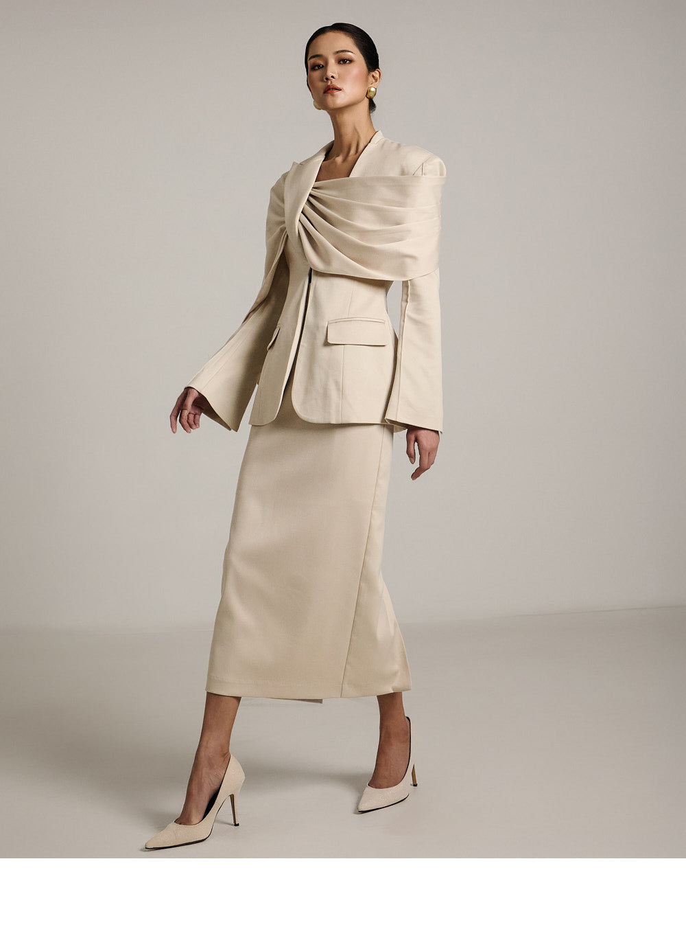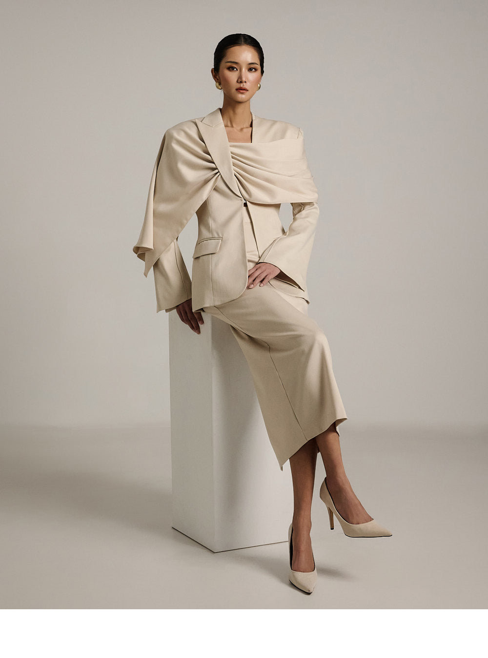 模特身高174CM,穿的是BEIGE尺码的S码。
