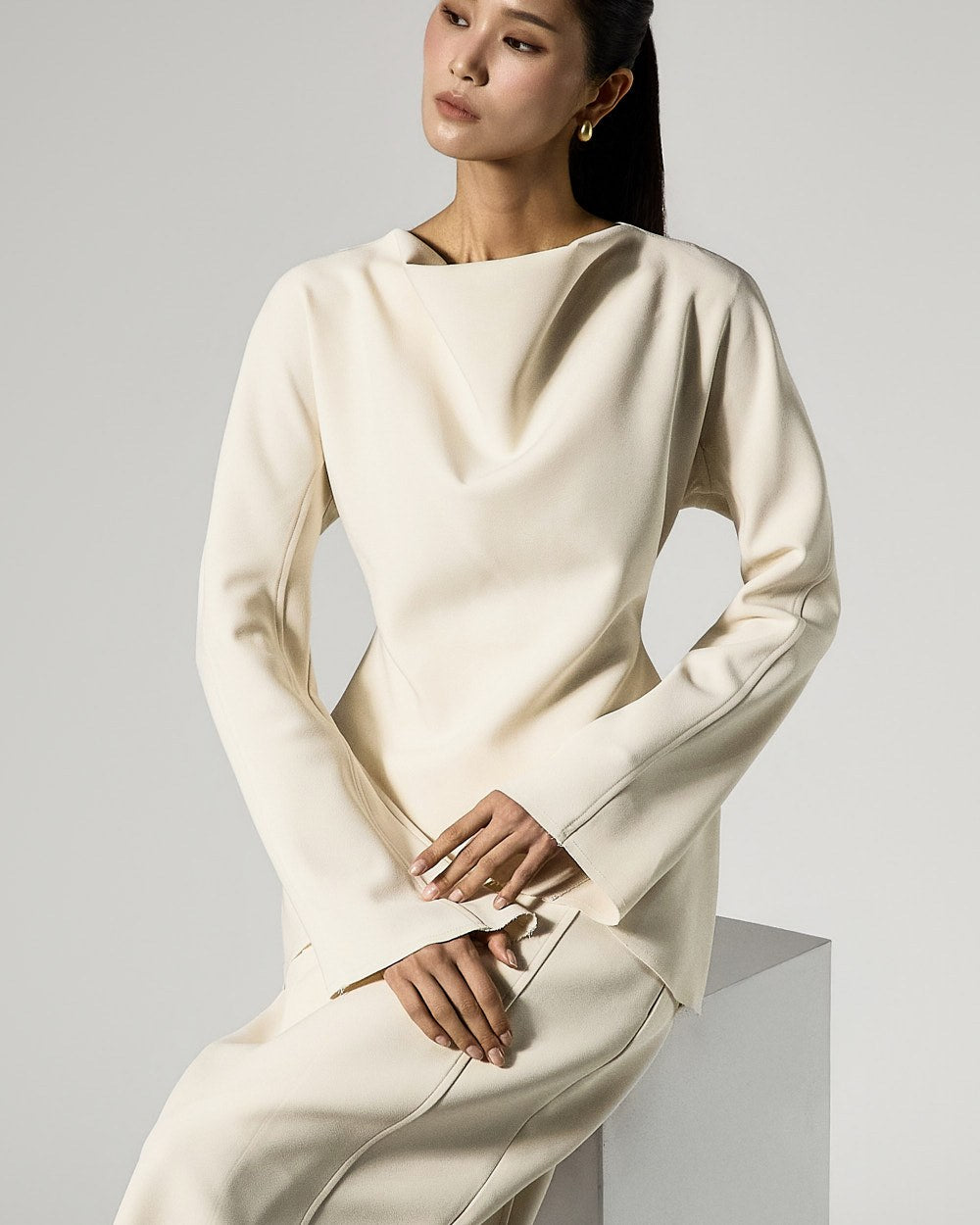 Model 173cm is wearing size S in the CREAM color.