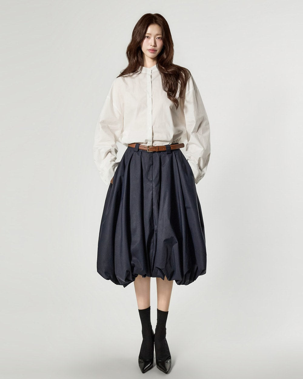 这是一款充满女性气息的腰带南瓜裙。