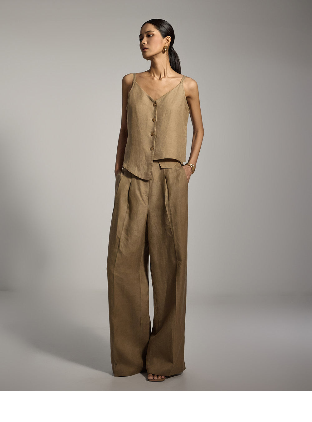 高腰廓形可拉长腿部线条。