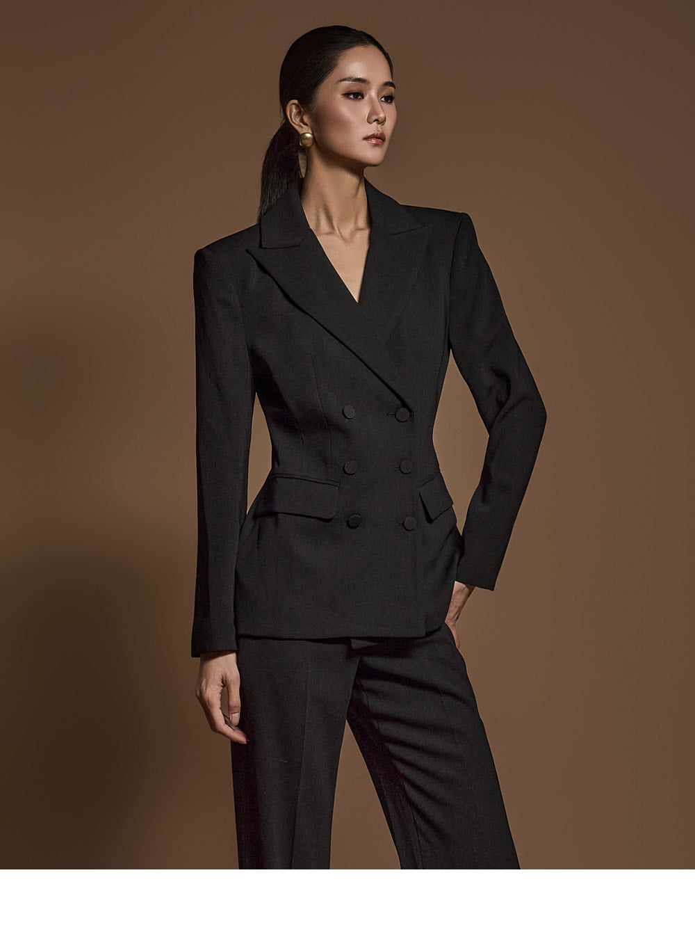 带有垫肩,营造出丰满的轮廓。