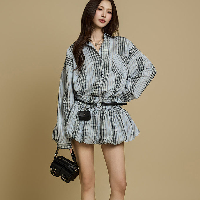 模特身高 171 厘米,穿着 SKY BLUE MIX 的 ONE 尺码。