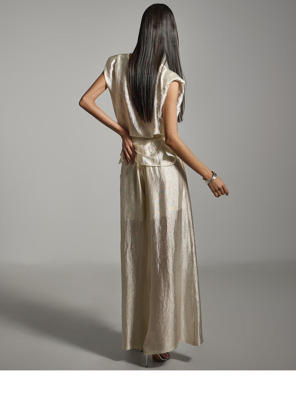 这款衬衫采用宽松剪裁,面料透明,营造出奢华的