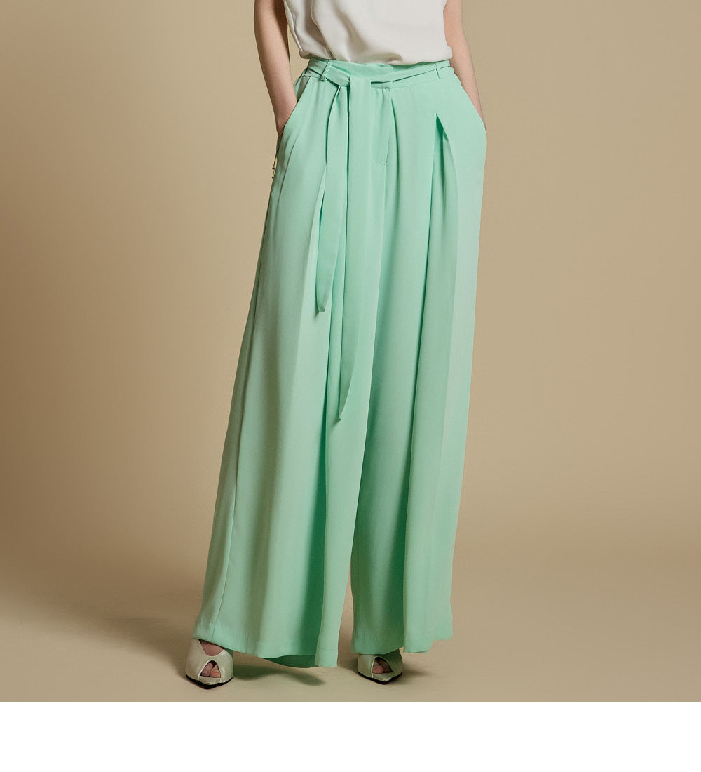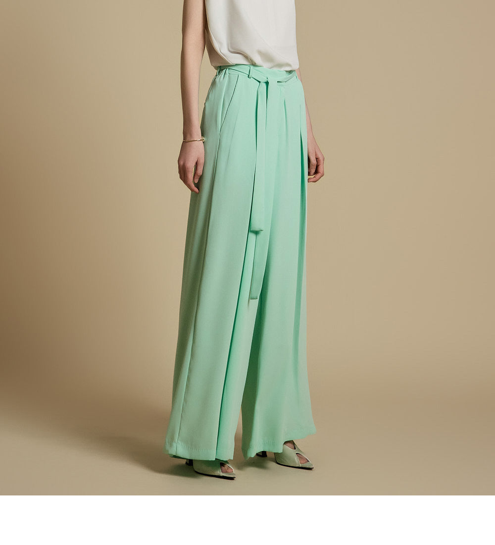 休闲裤采用宽腿长款设计,可拉长腿部线条。