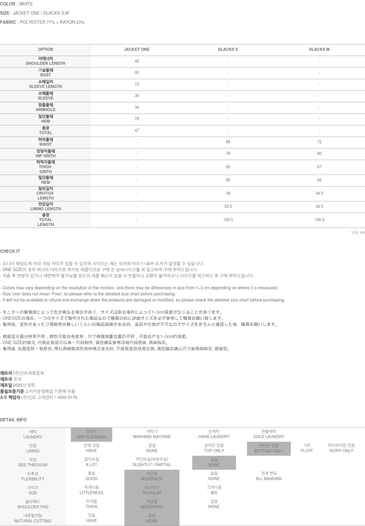 白色下装为 S 码。