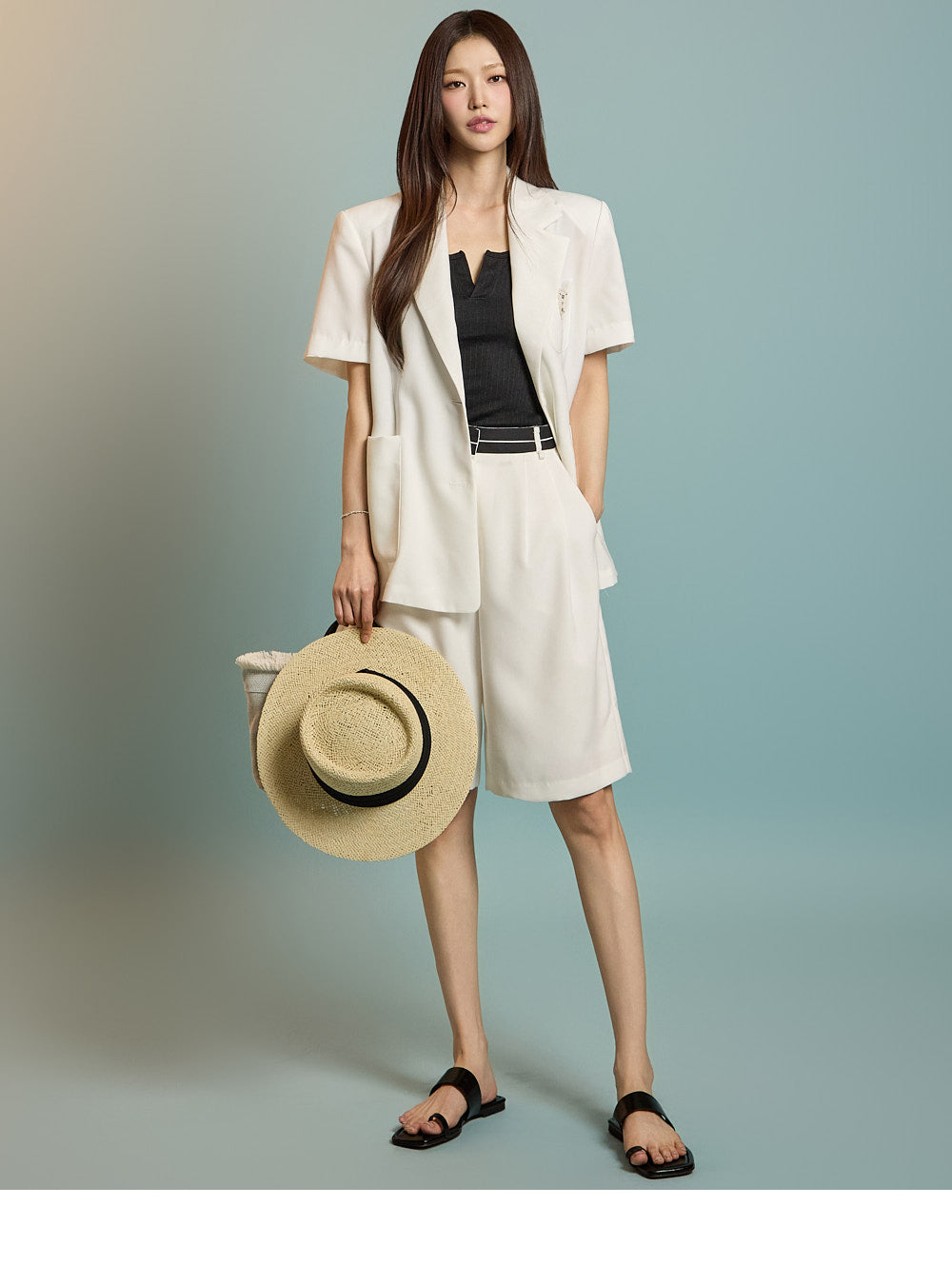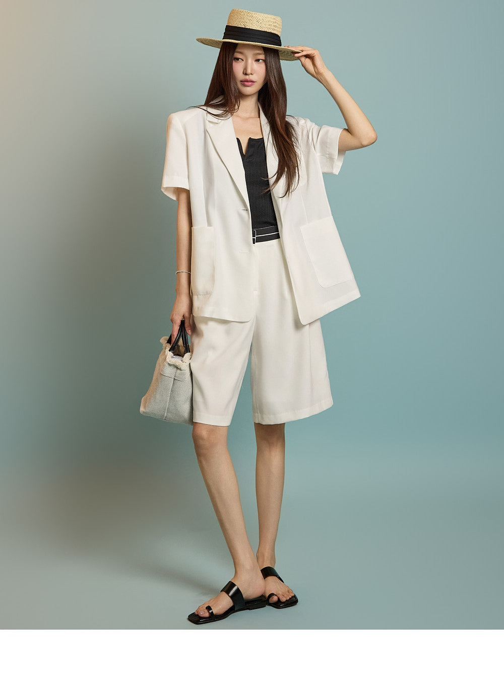 以及色块百慕大短裤。