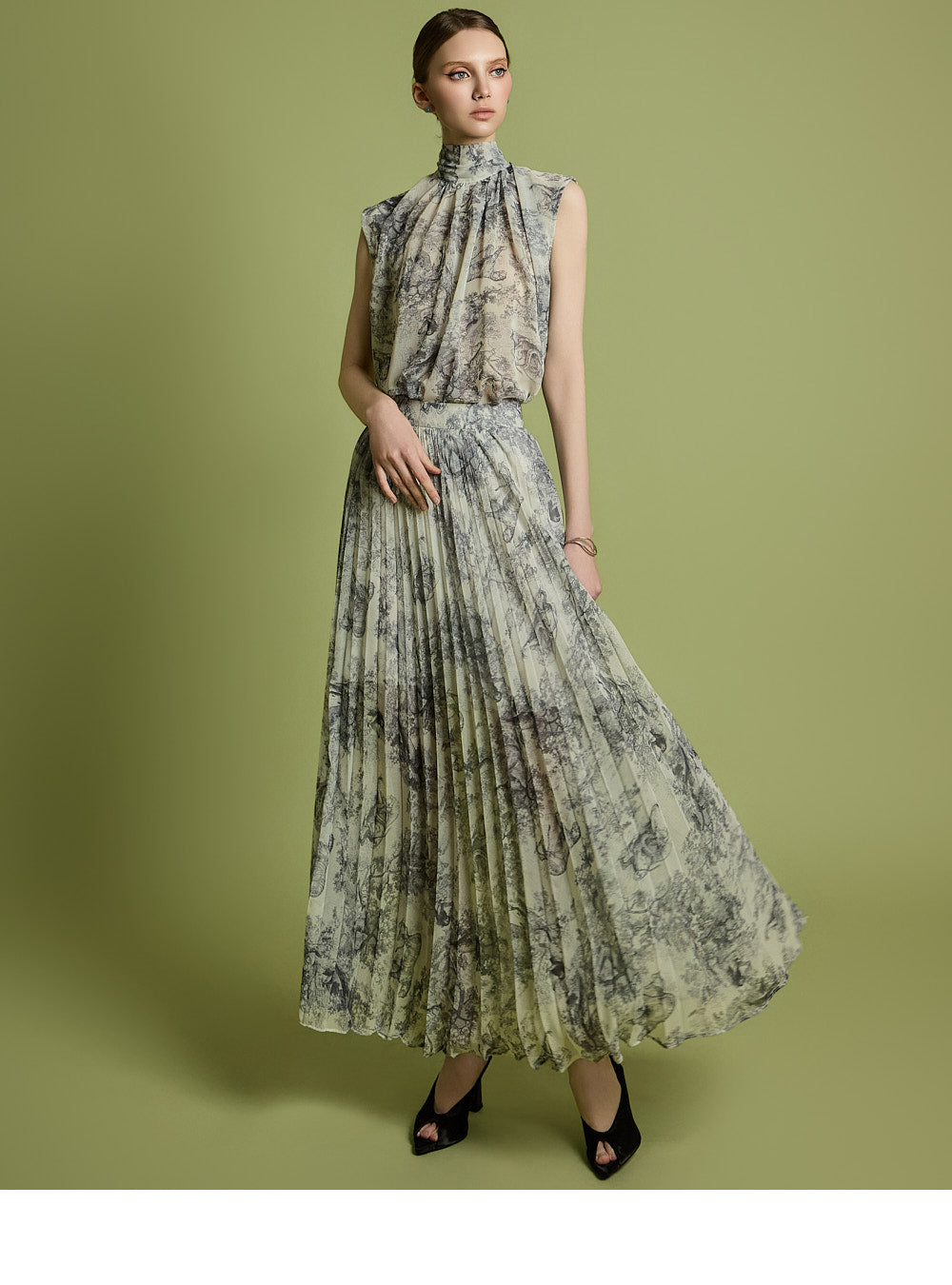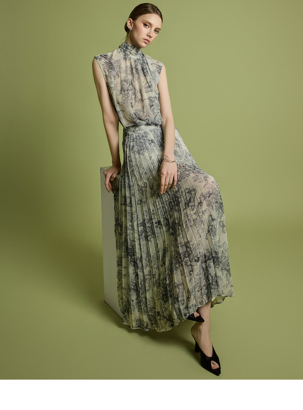 裙子采用长褶廓形,营造出整洁优雅的外观,