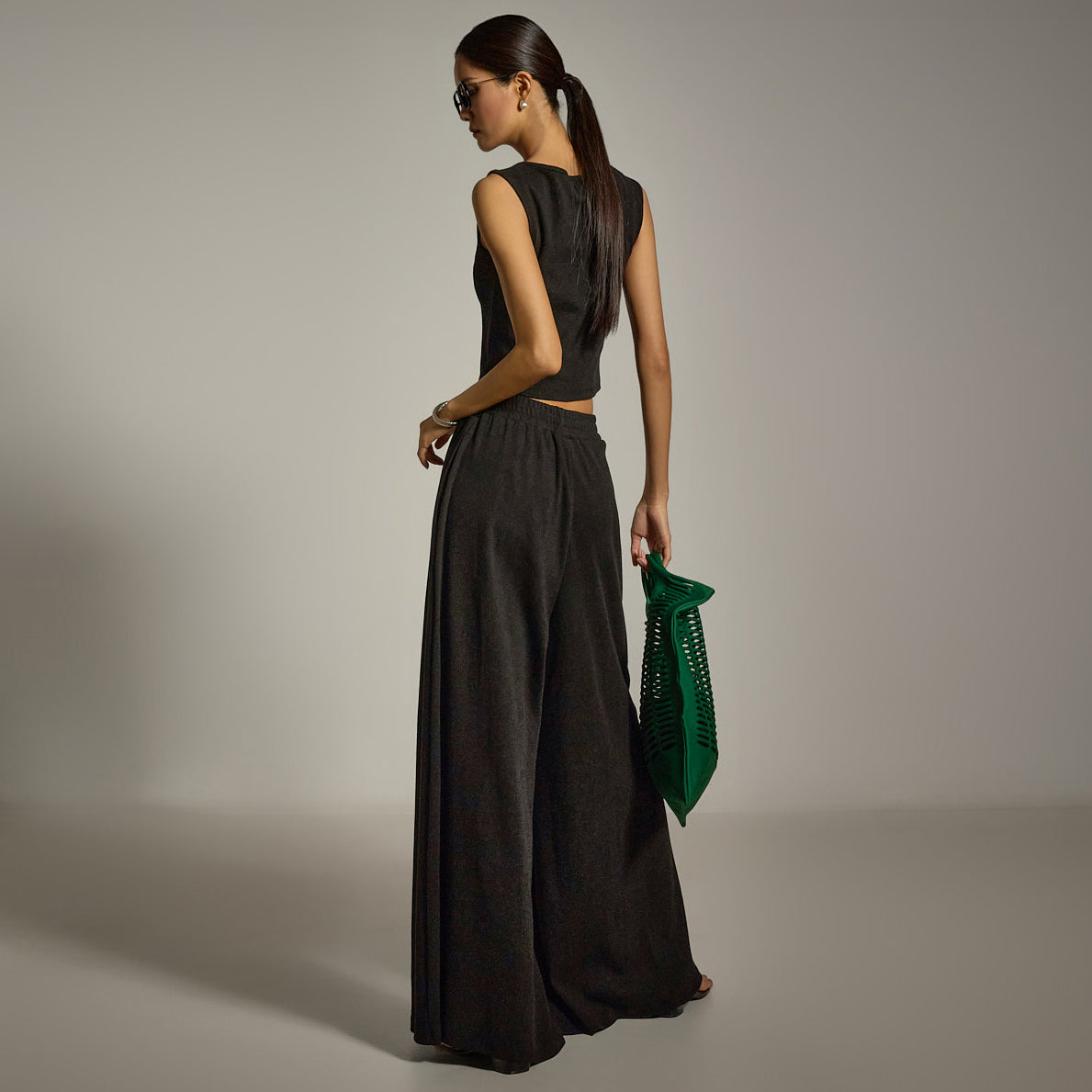 搭配一套服装,这身装扮呈现出一种轻松而精致的休闲风格。