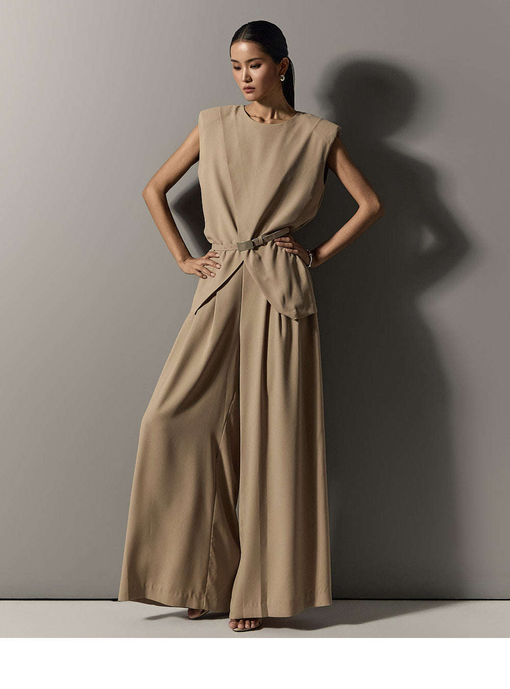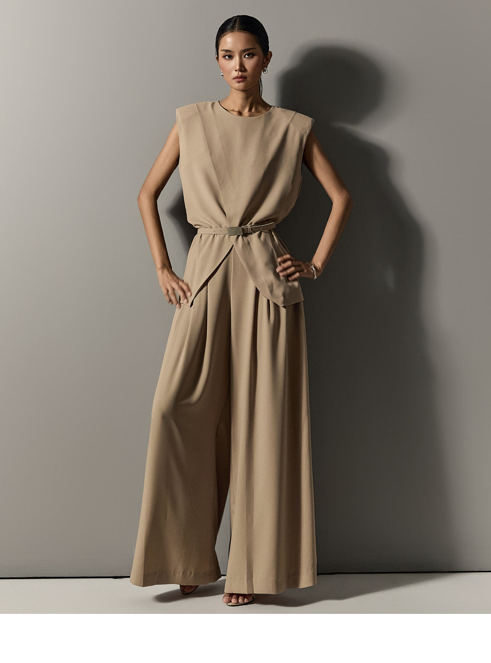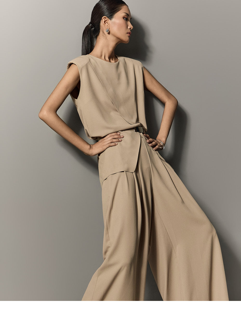 搭配穿着,这套服装呈现出精致而时尚的风格。