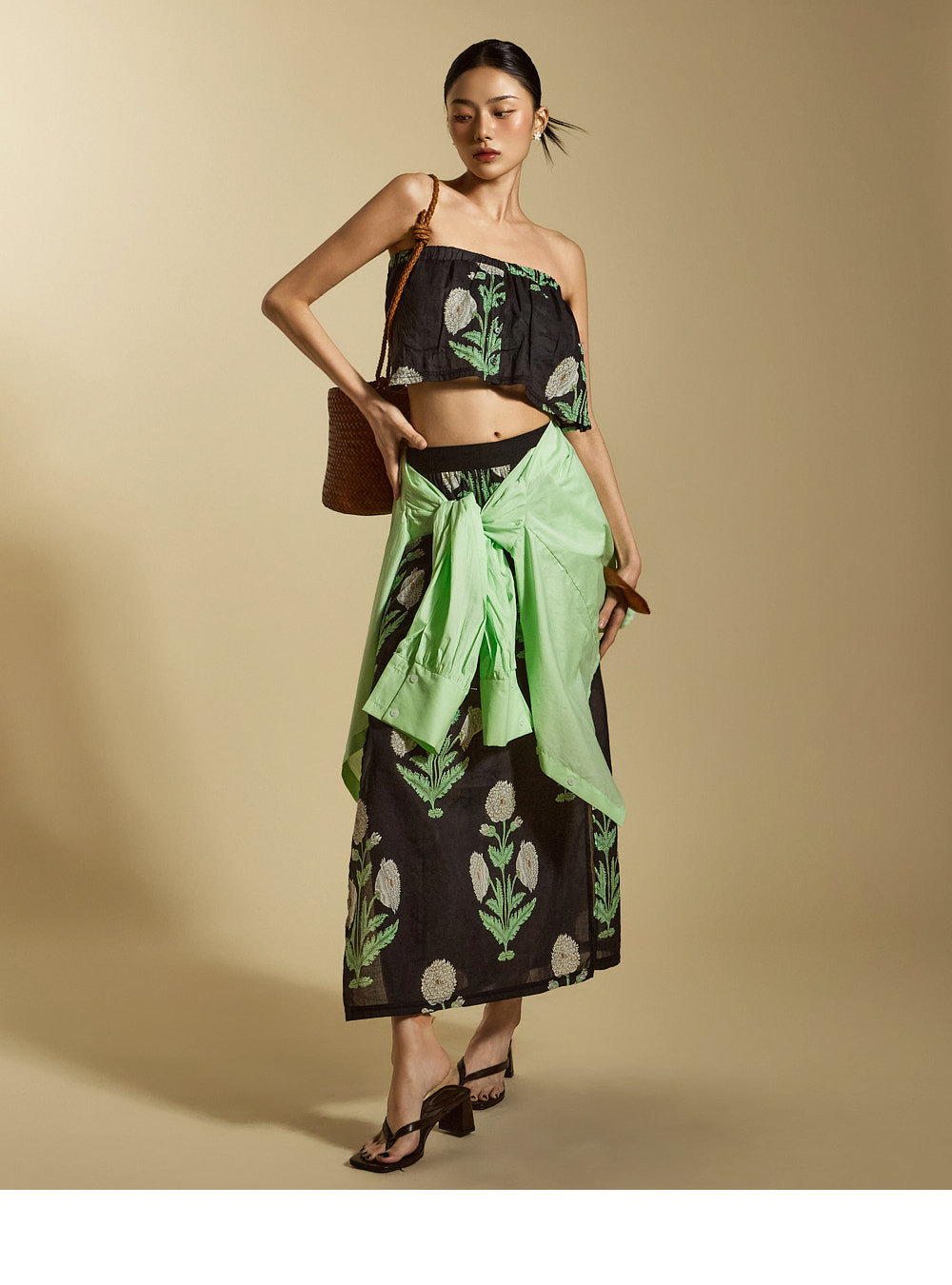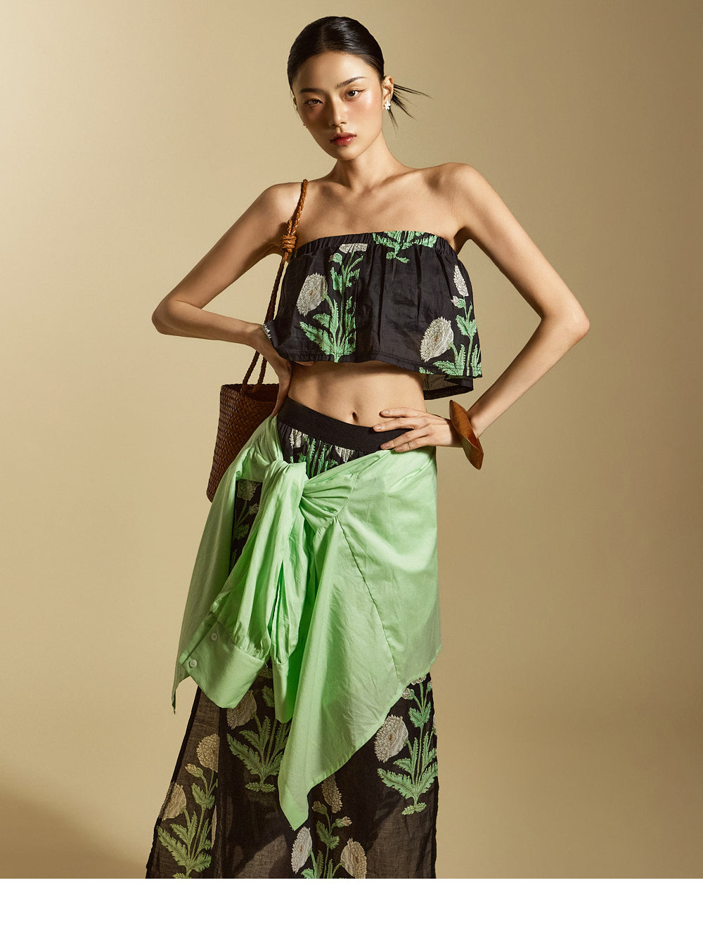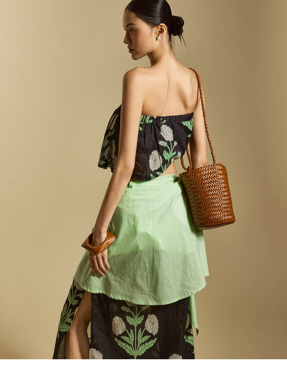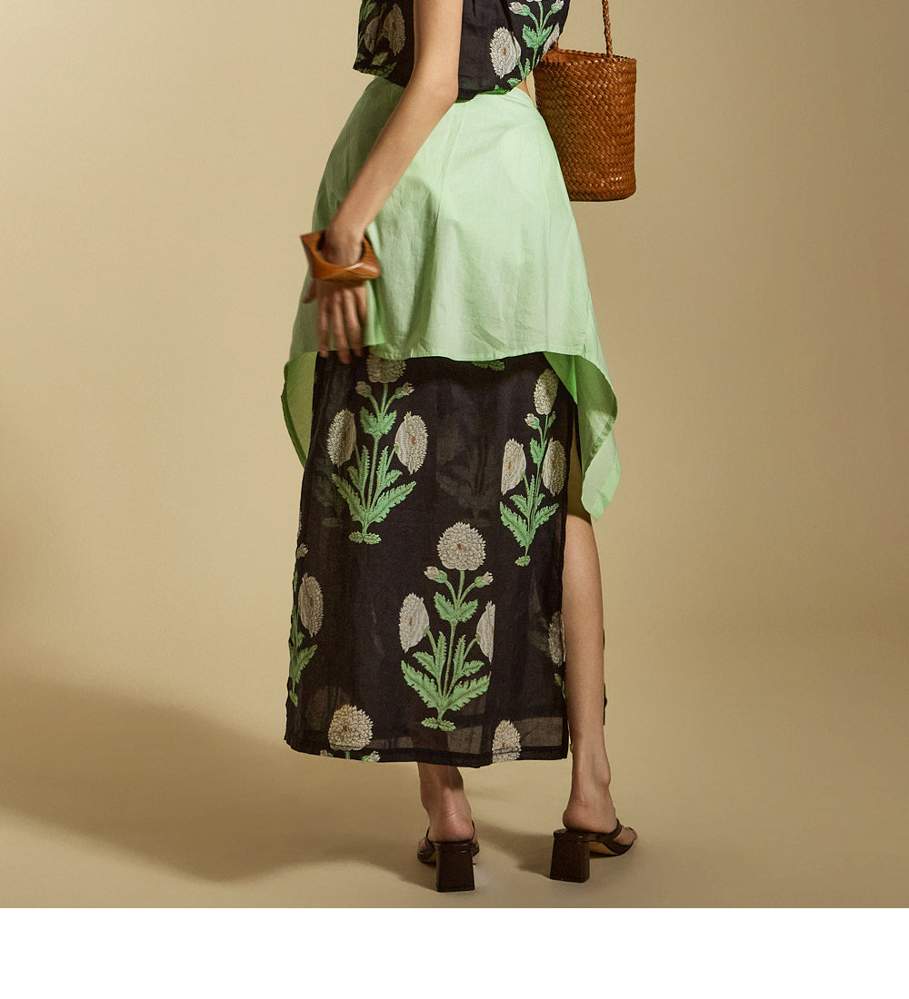 侧开衩设计,打造宽松廓形,部分衬里设计,减少透明度。