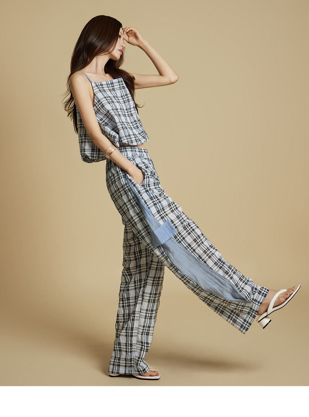 这款无袖上衣和裤子套装看起来休闲又时尚。