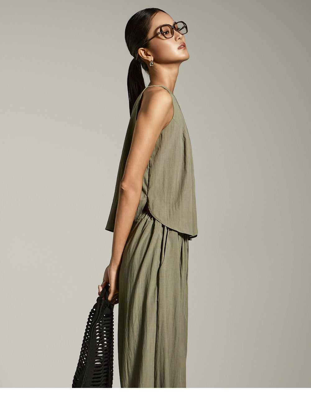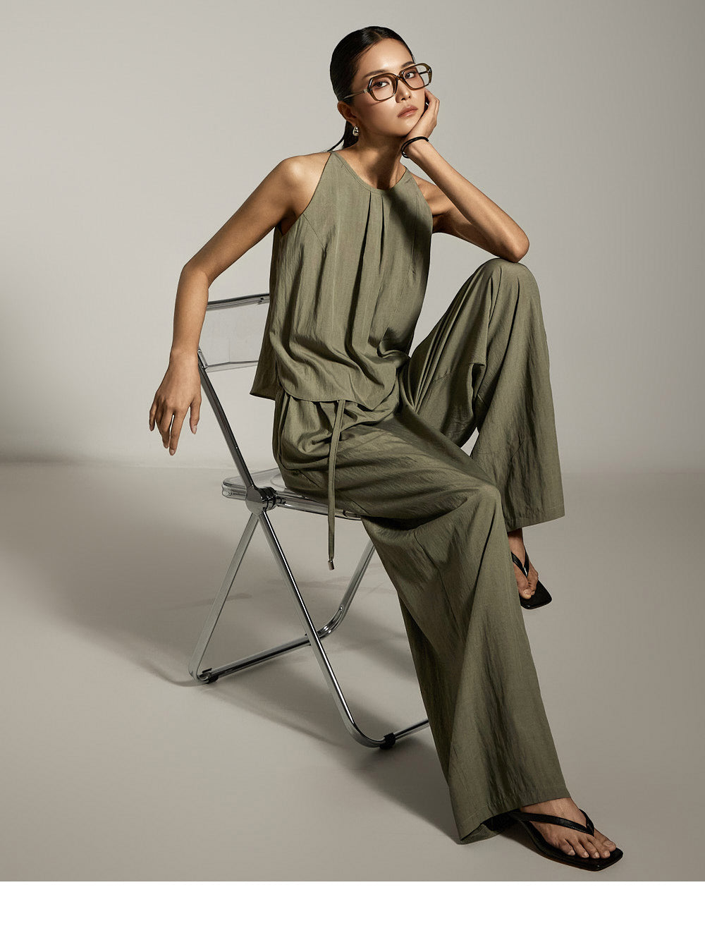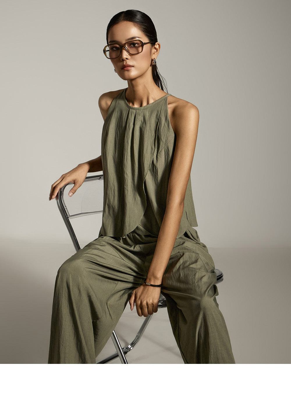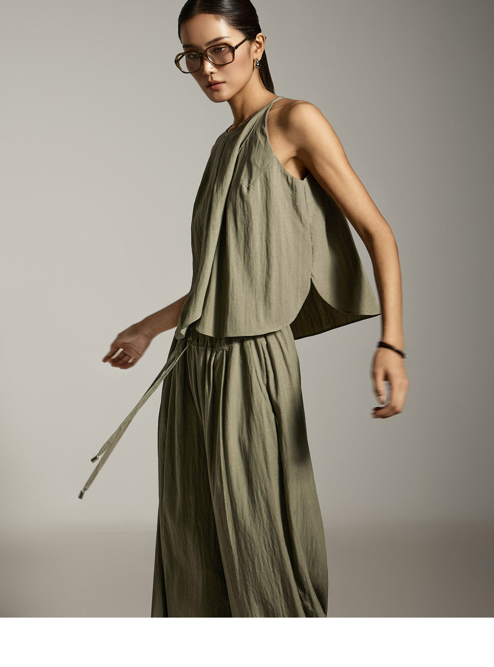 这款无袖上衣和裤子套装带来轻松的日常氛围。
