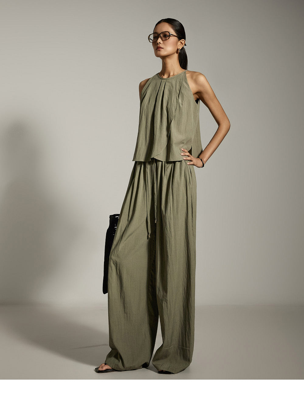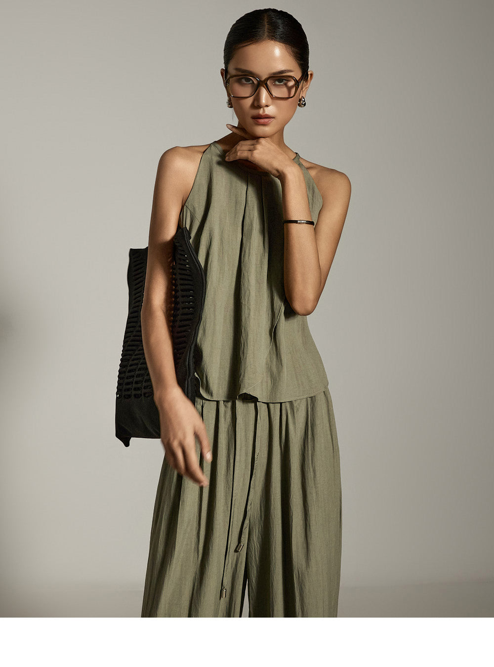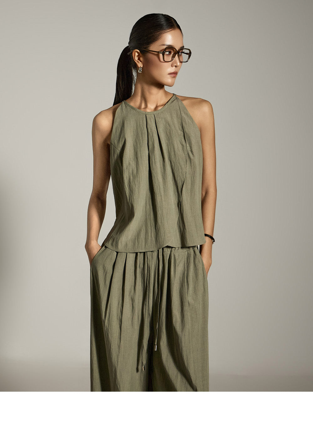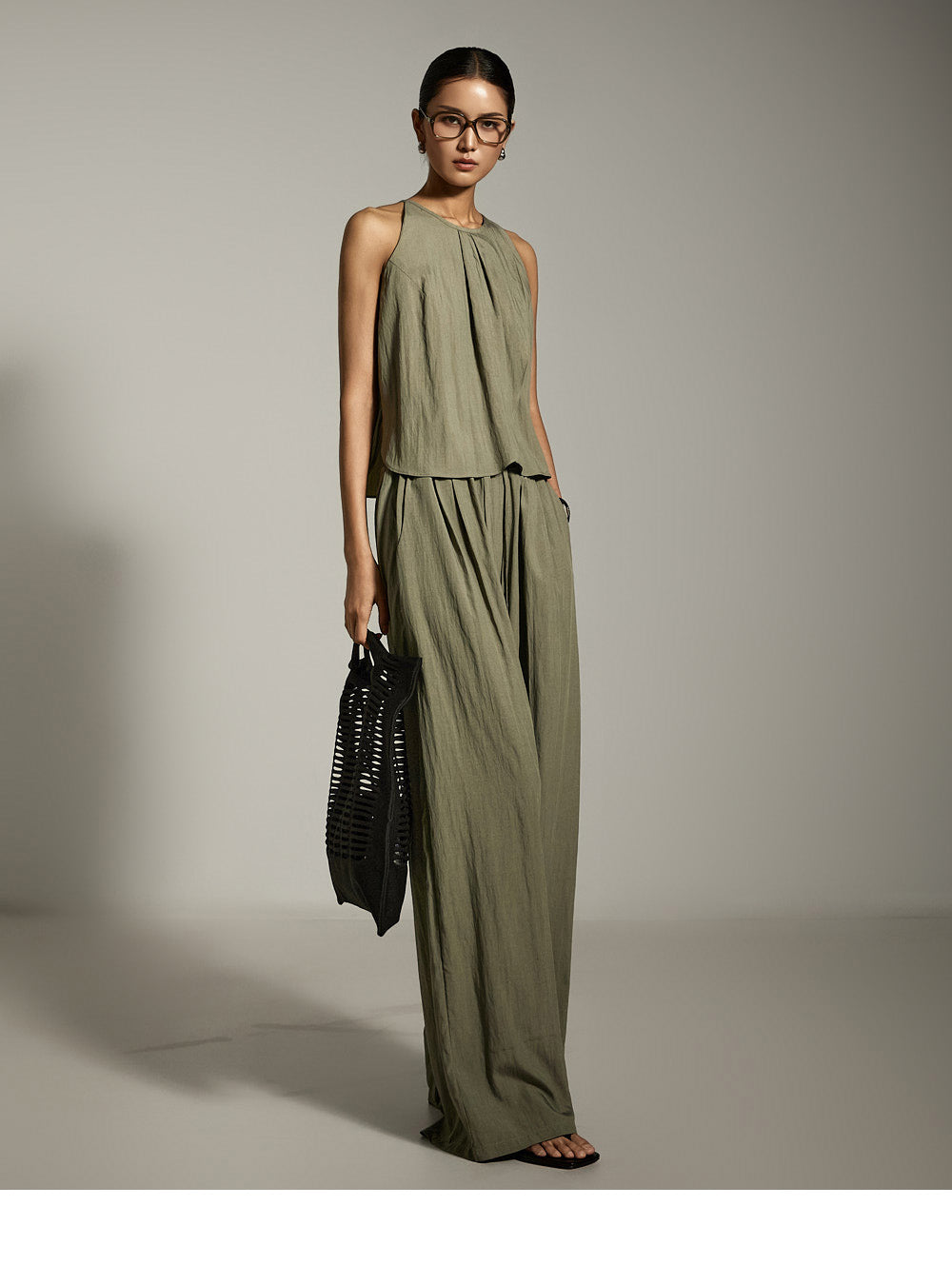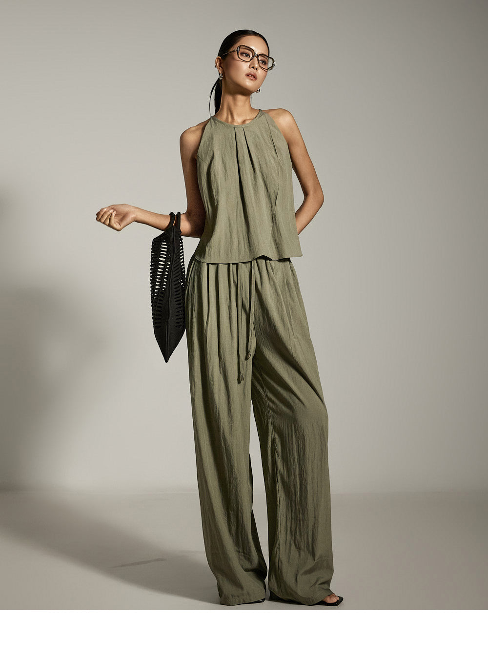 这款无袖上衣和裤子套装带来轻松的日常氛围。