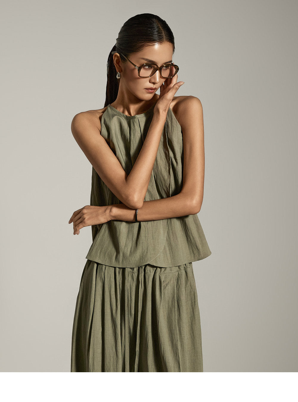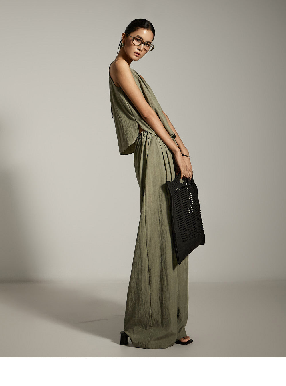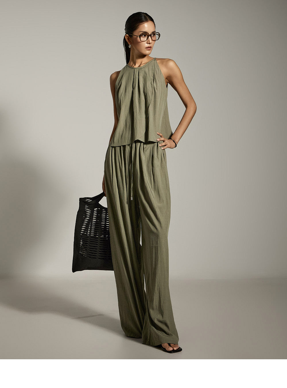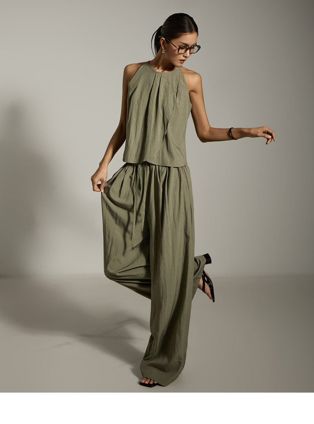 这款无袖上衣和裤子套装带来轻松的日常氛围。