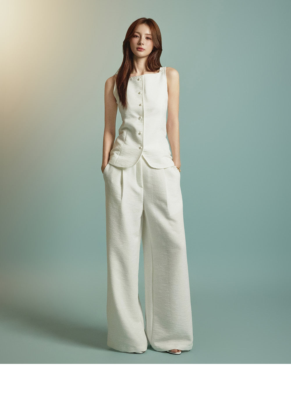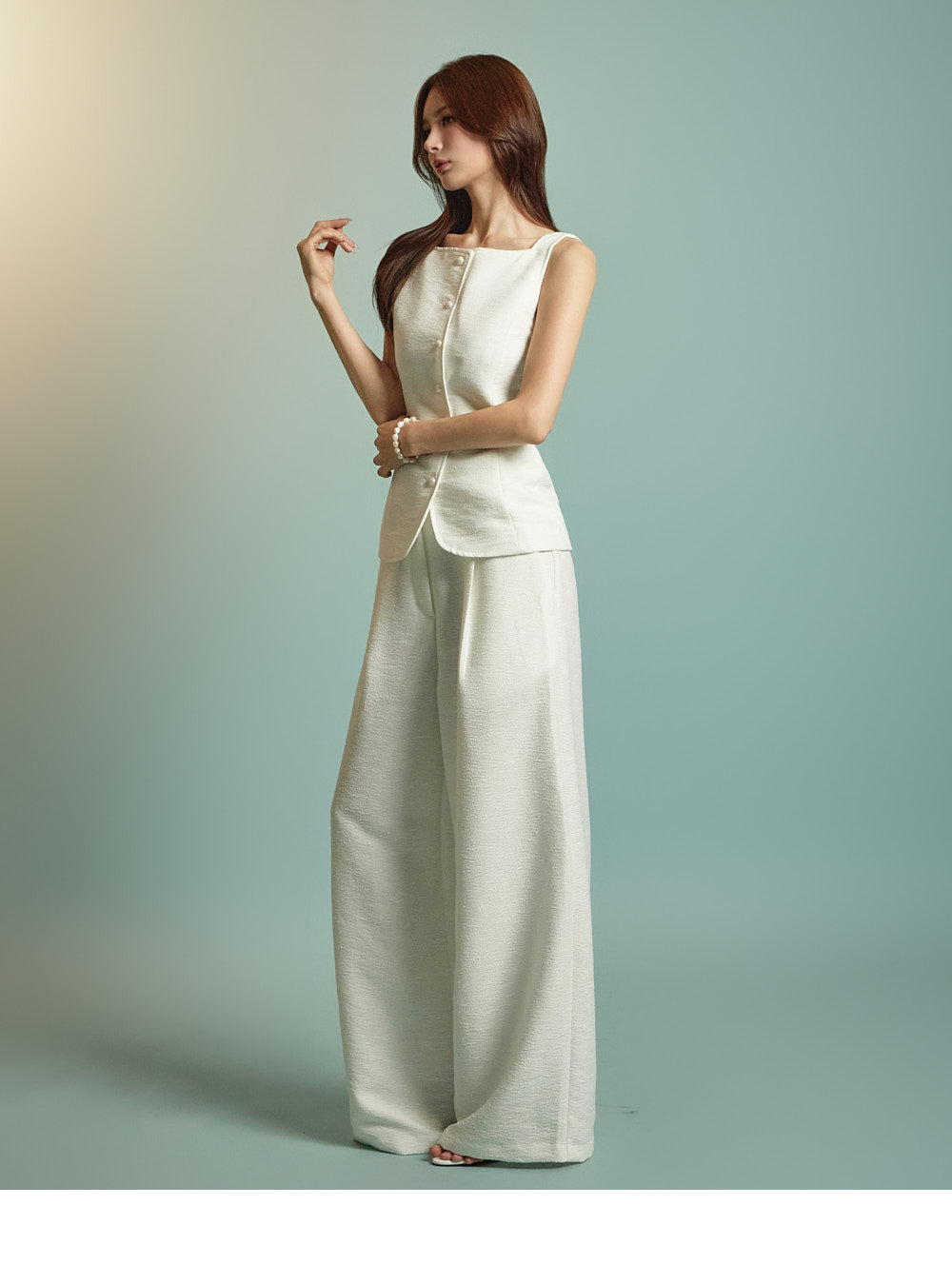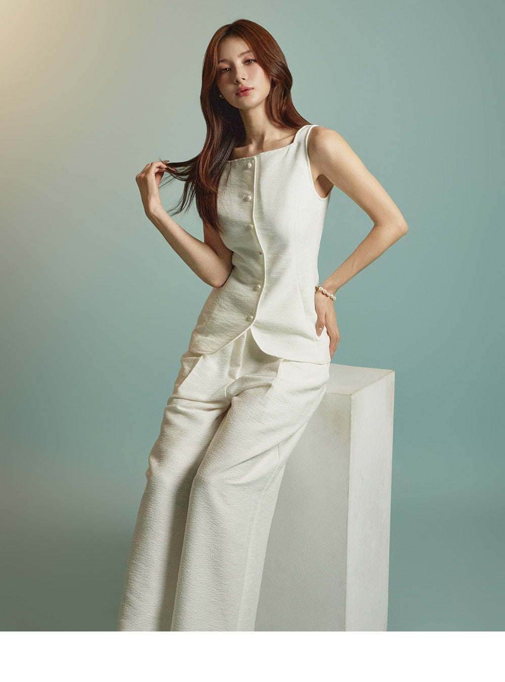 这是一套散发着女性优雅气质的背心和裤子套装。