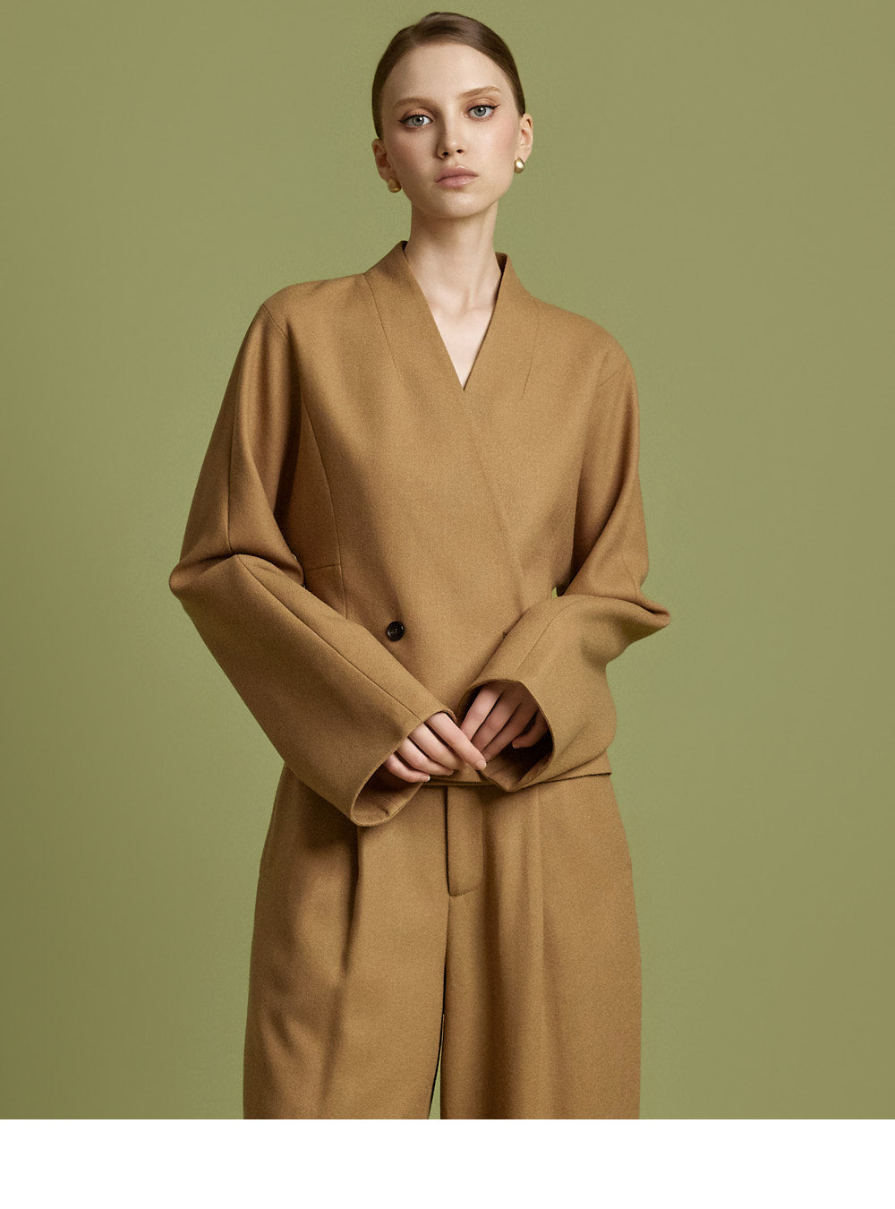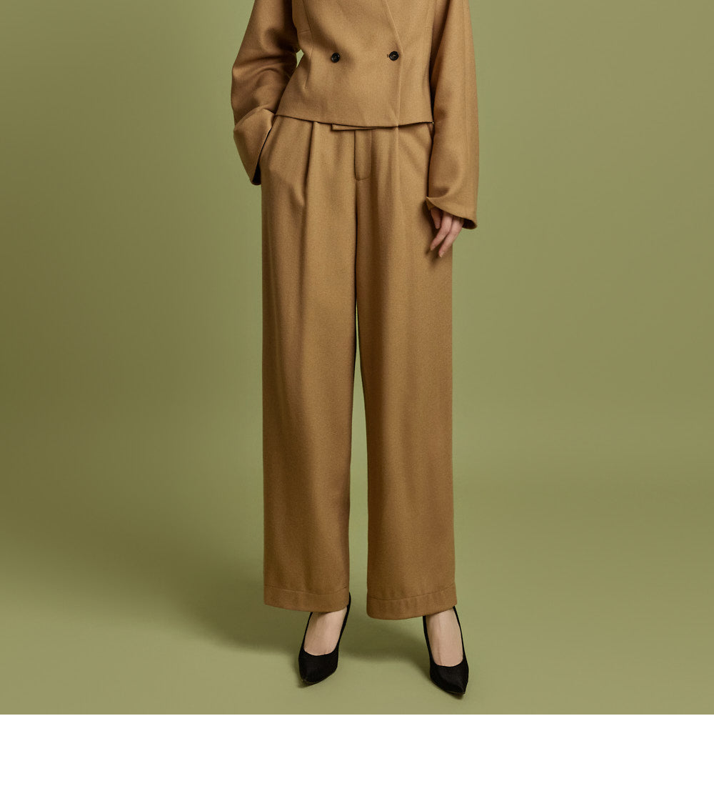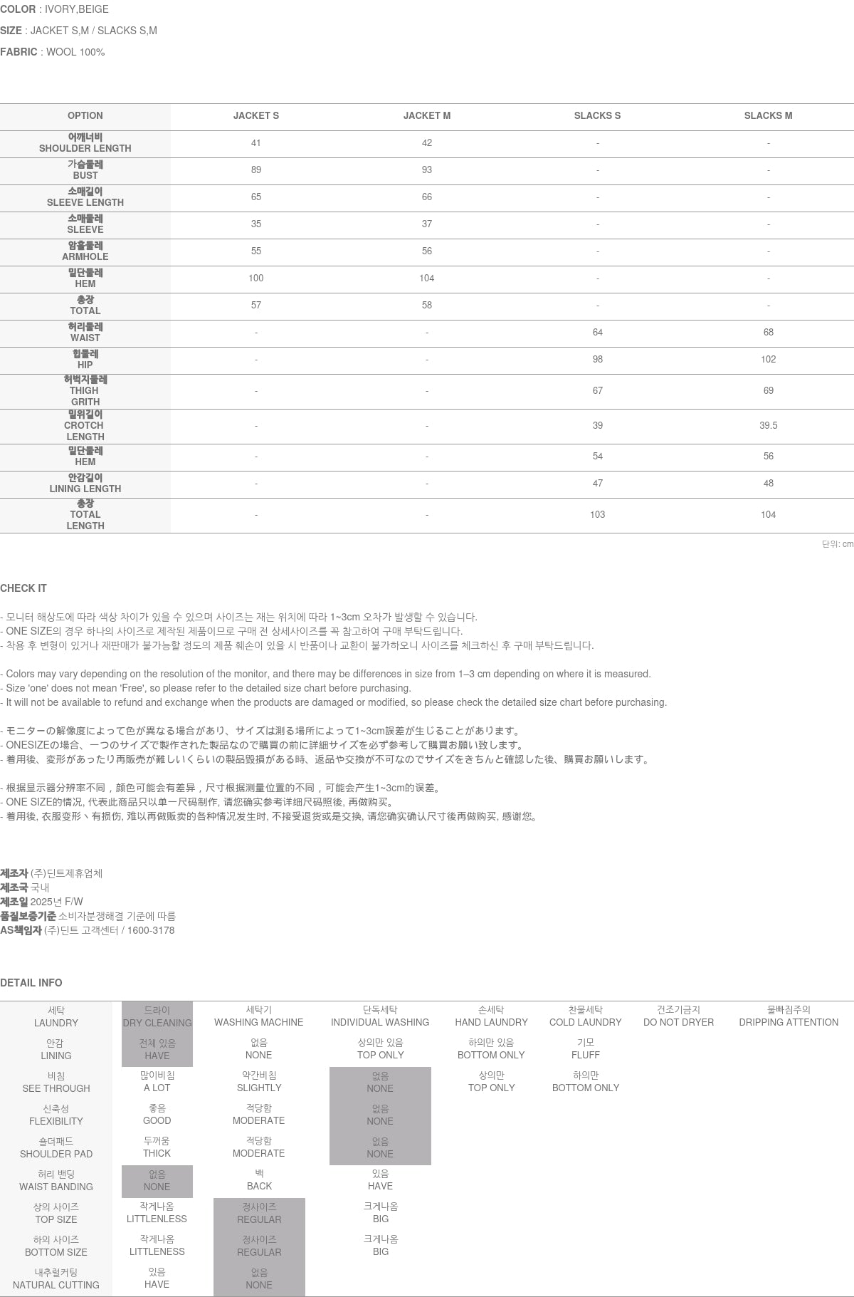 Model height: 174cm, wearing size S for both jacket and slacks, color: BEIGE.