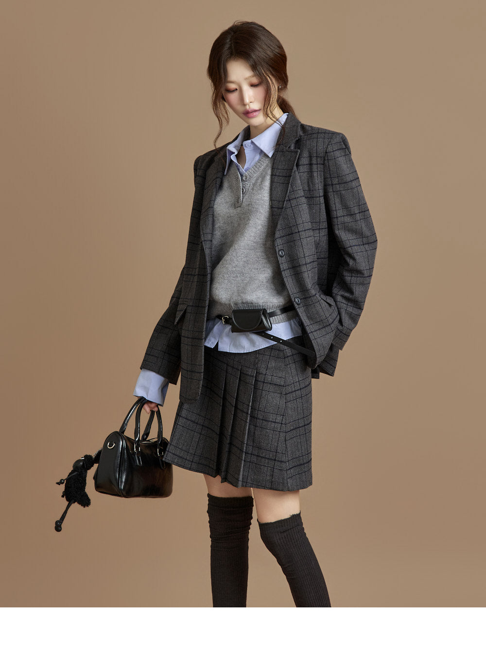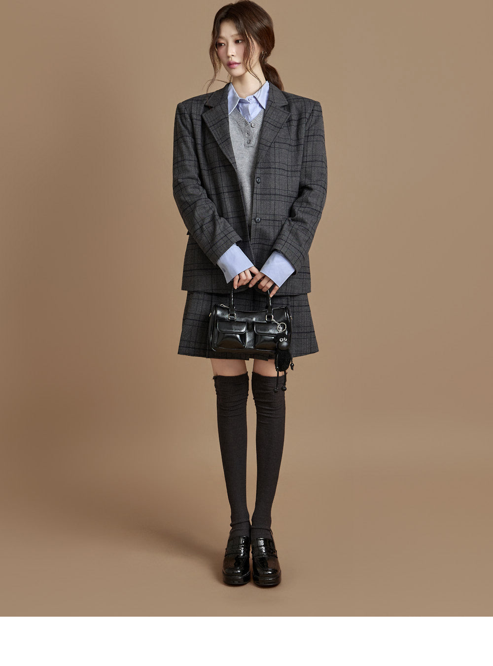 The 171cm model is wearing a size ONE jacket and a size S skirt,