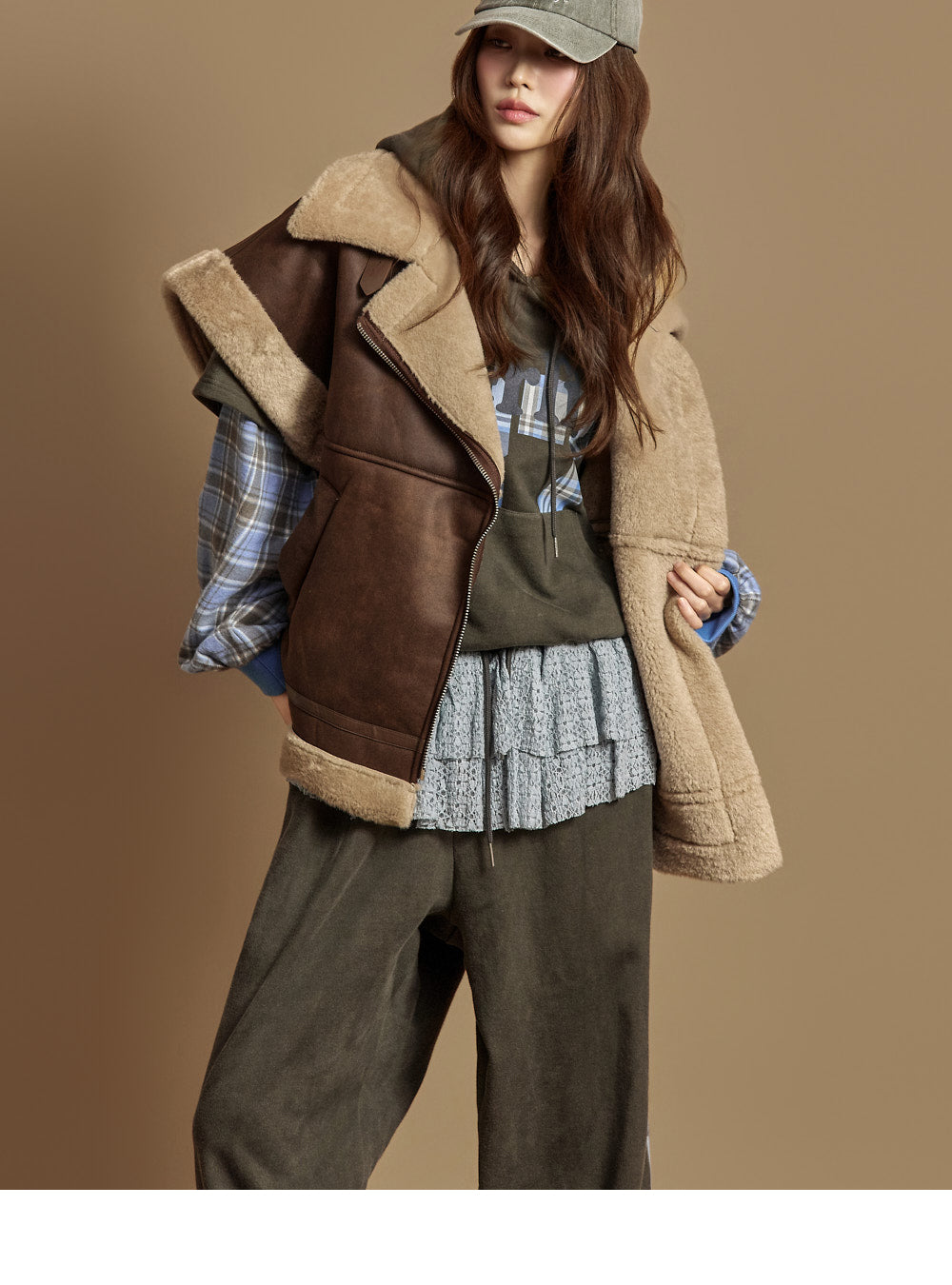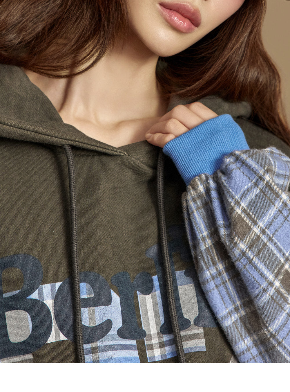 Model is 171cm tall and wears size ONE top and bottom, KHAKI color.