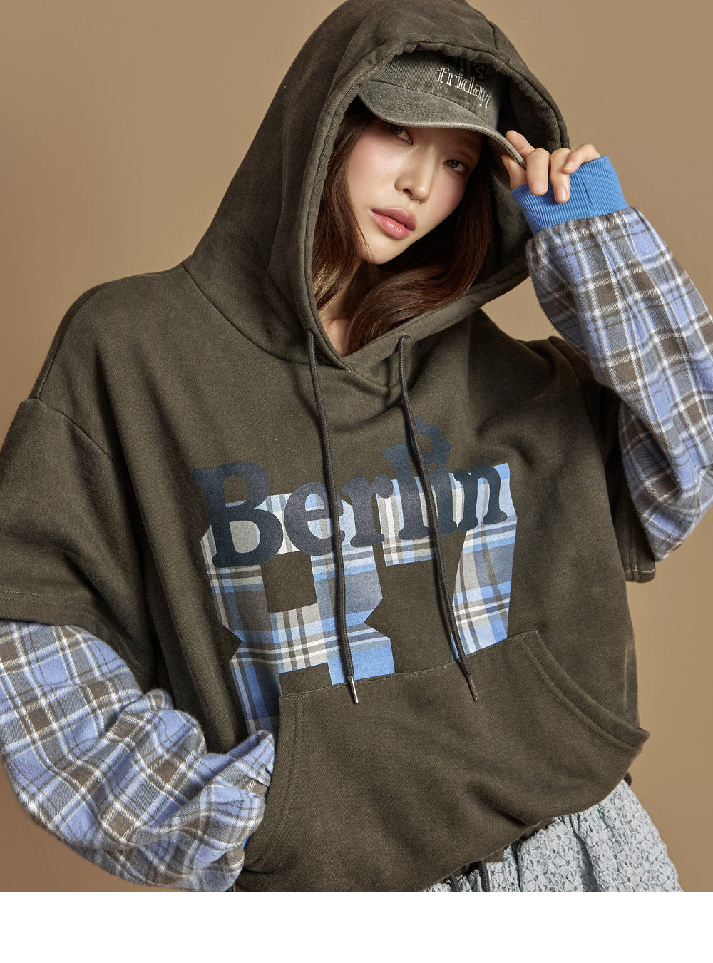The hood has a loose fit and a short length,