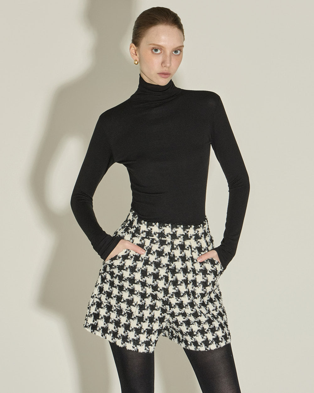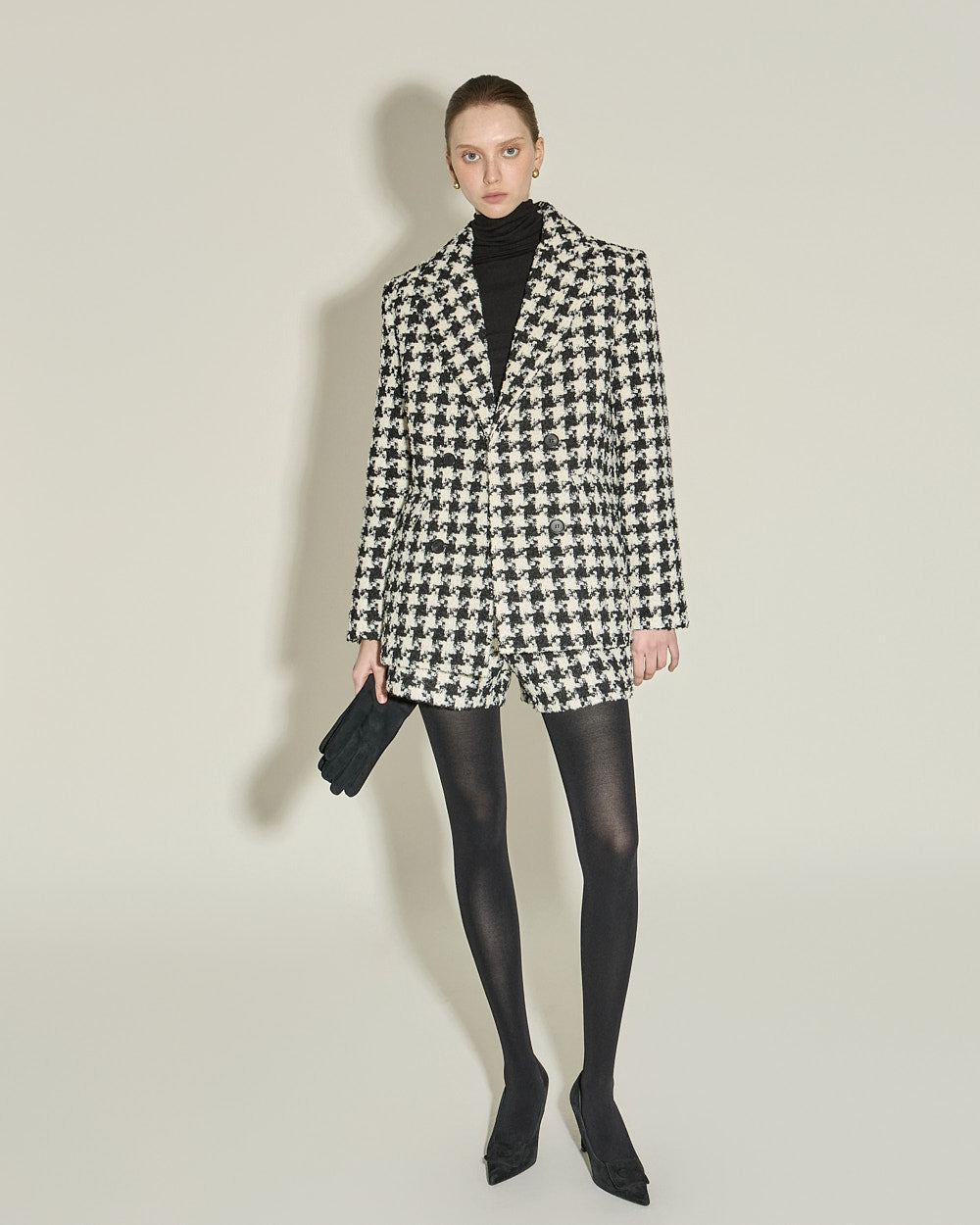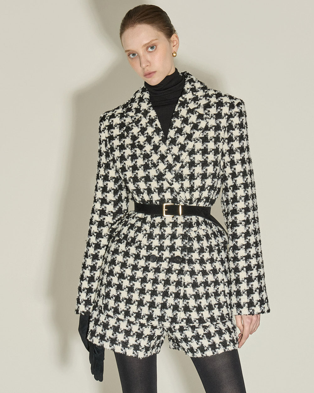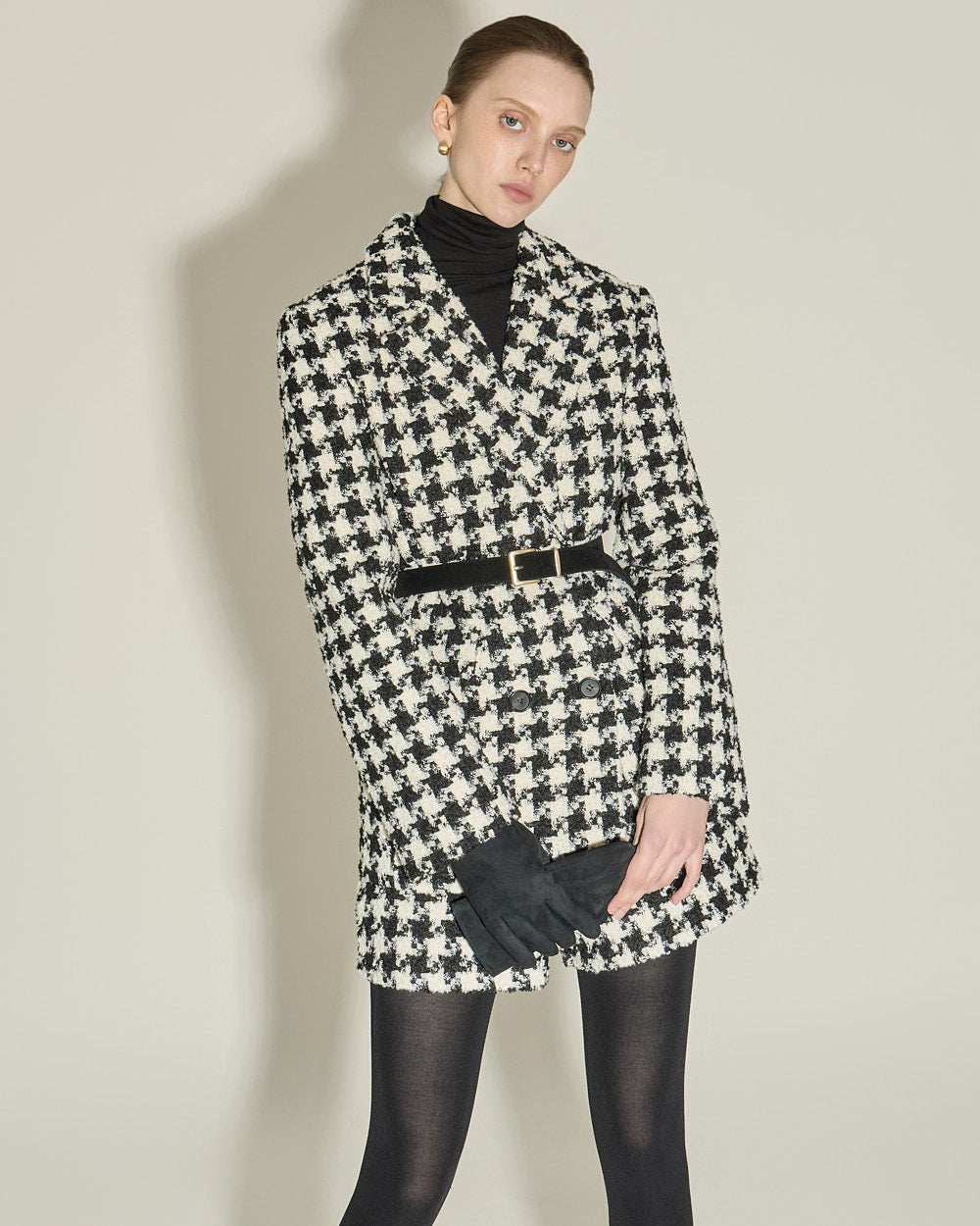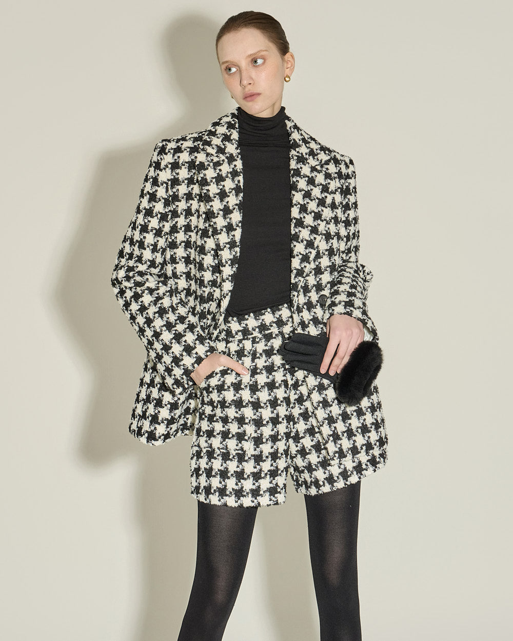 The houndstooth check and beige color combination