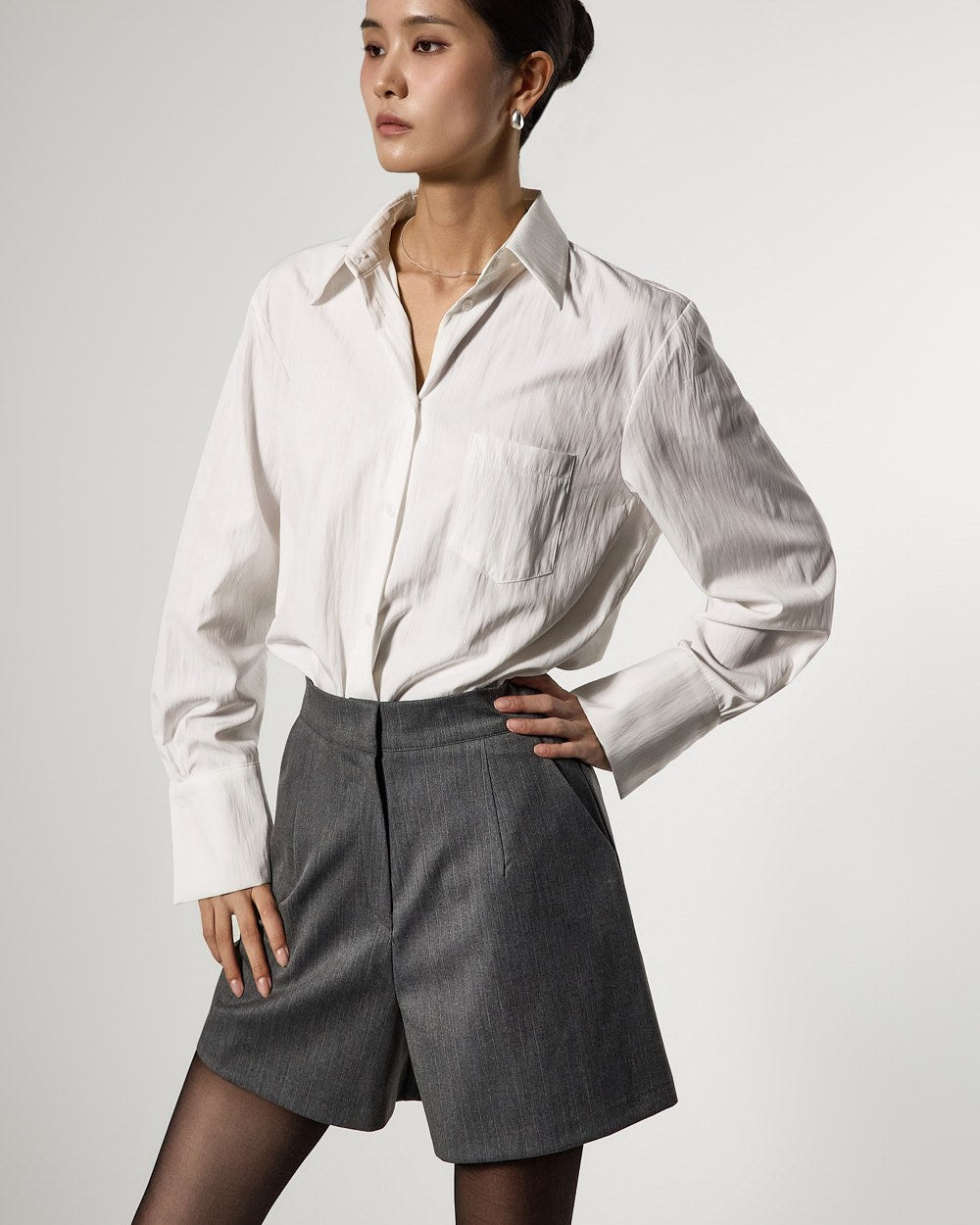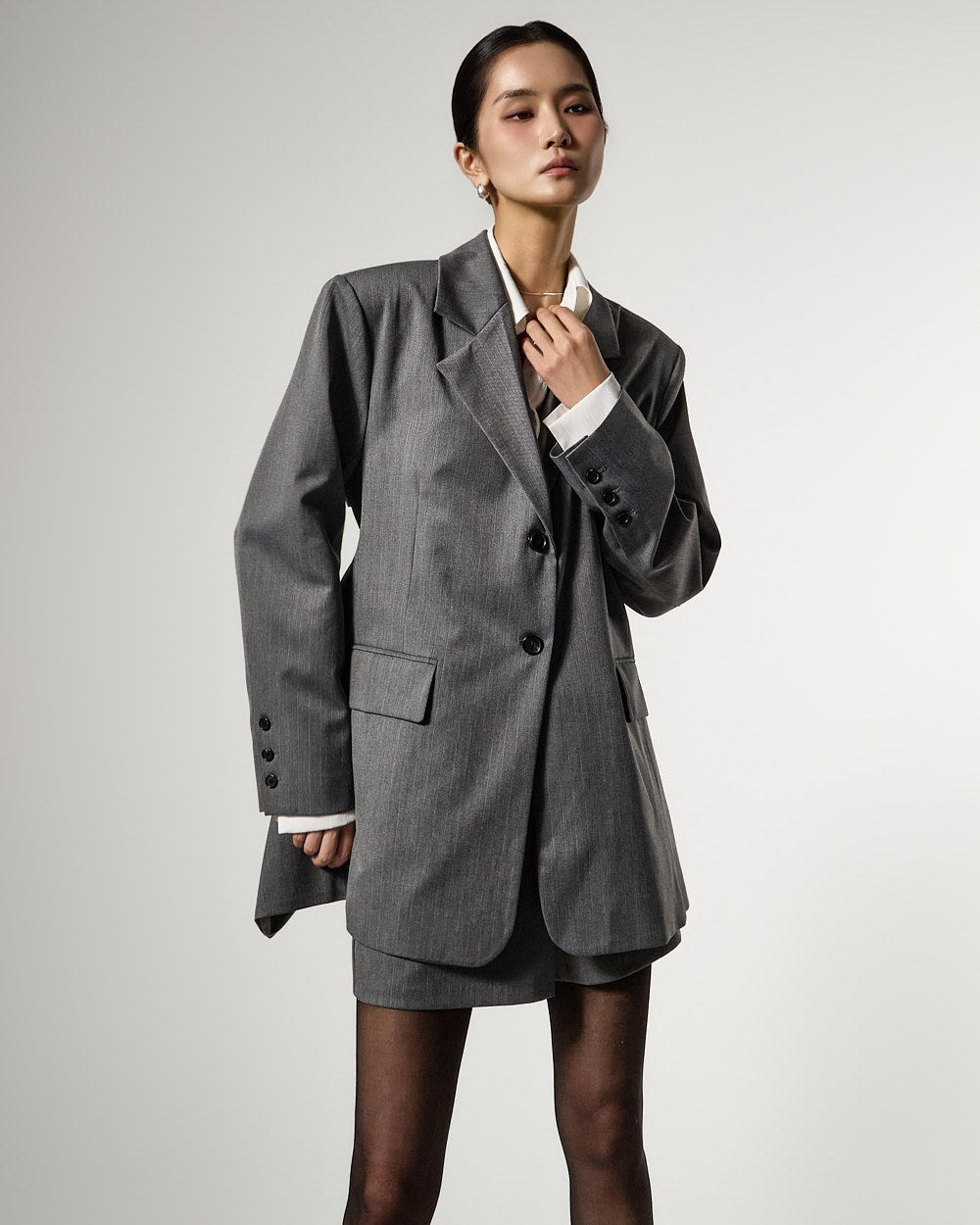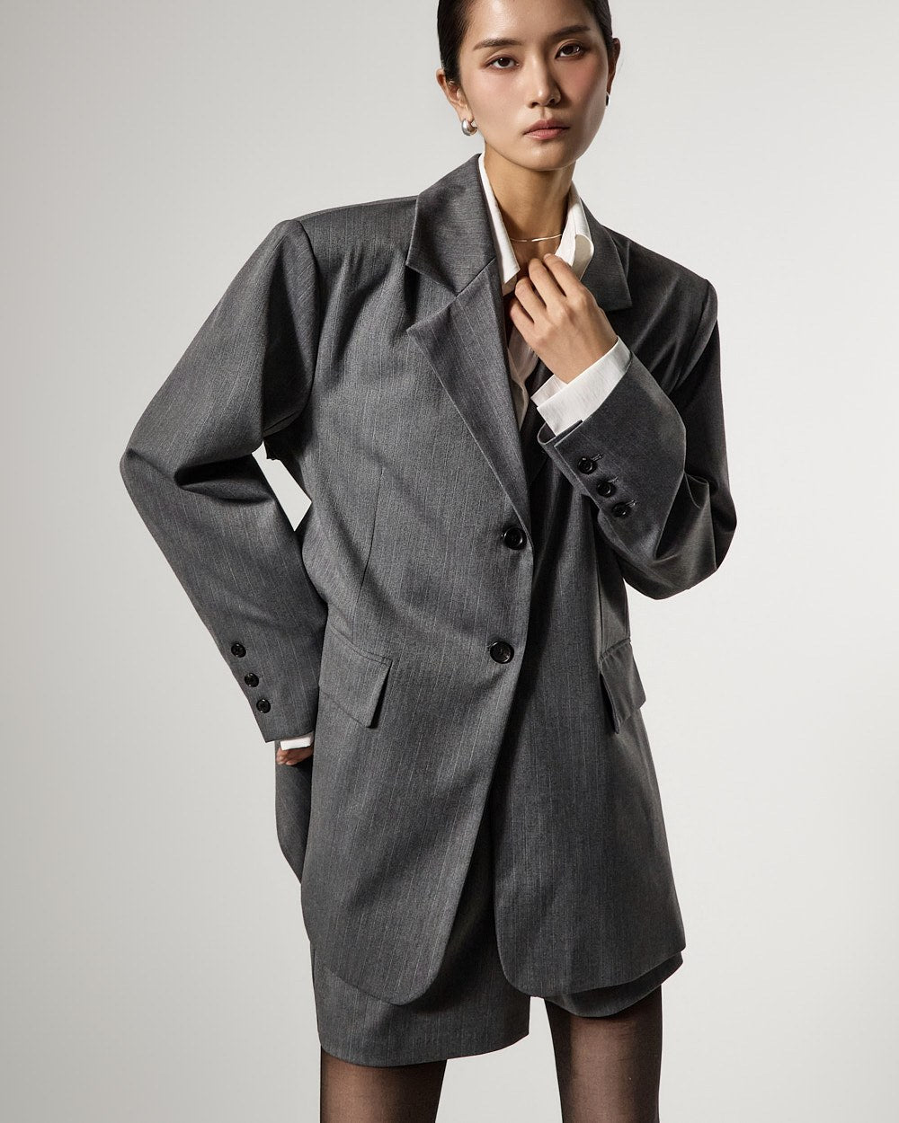前襟采用钩扣设计和适度的垫肩,打造简洁利落的版型。