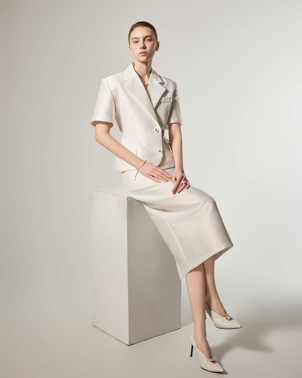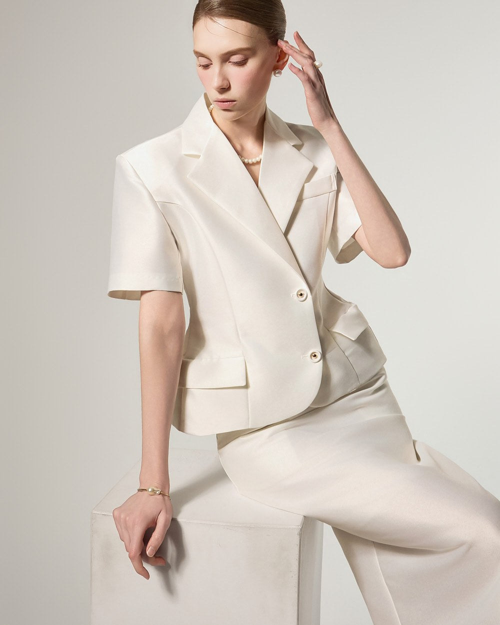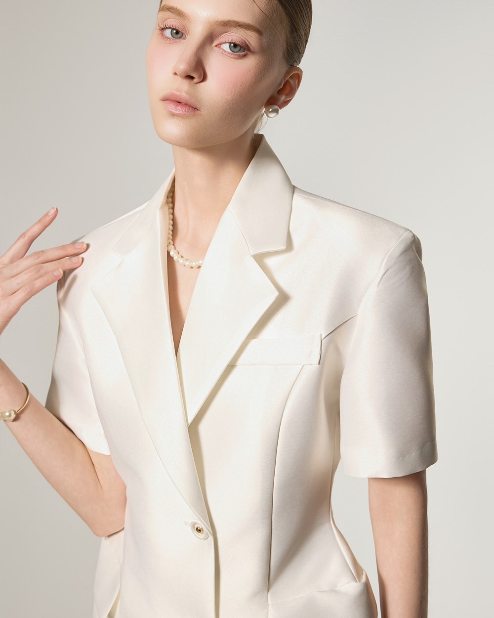 短袖裁剪设计,打造干净利落的精致造型。