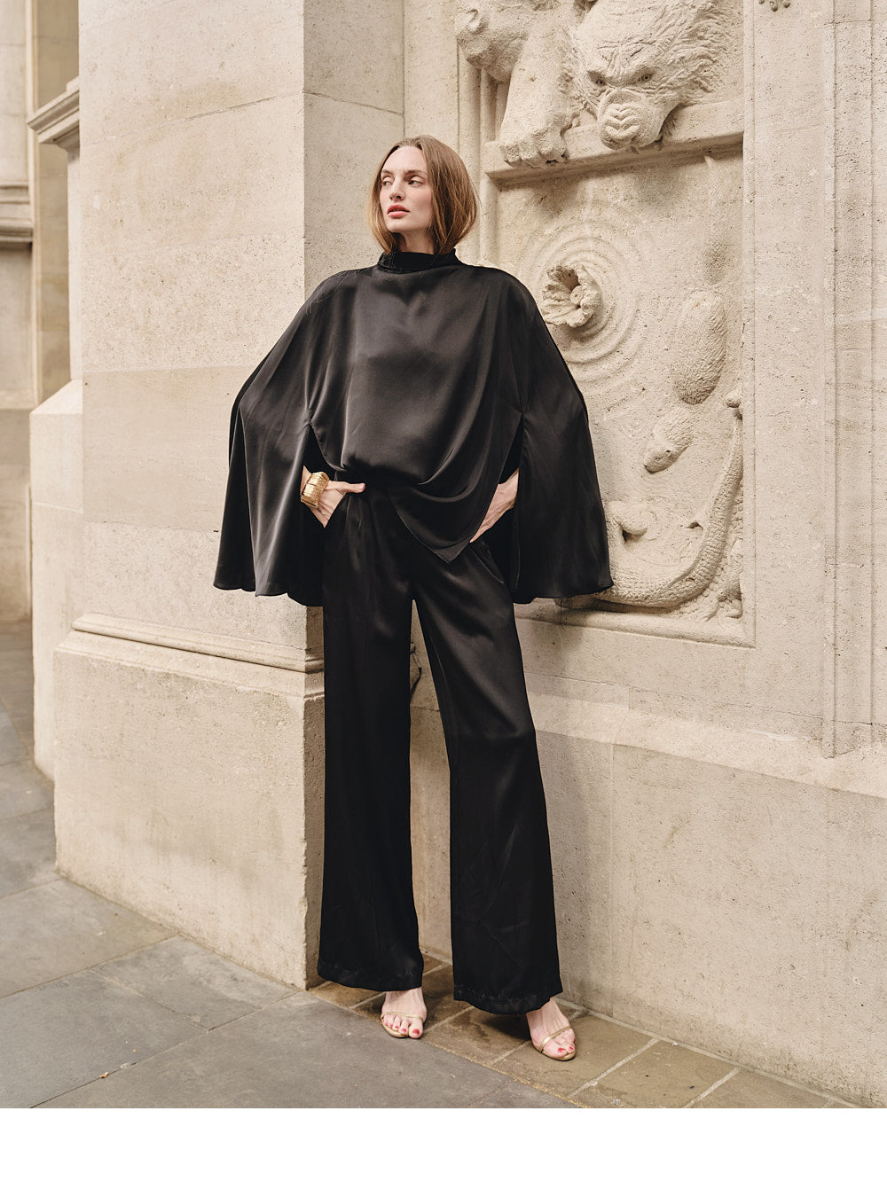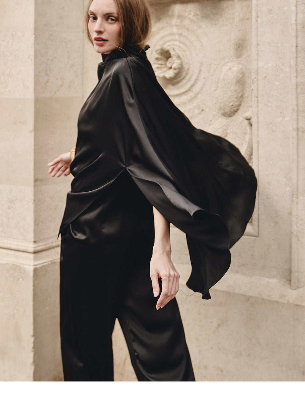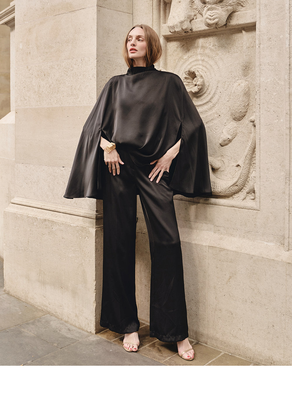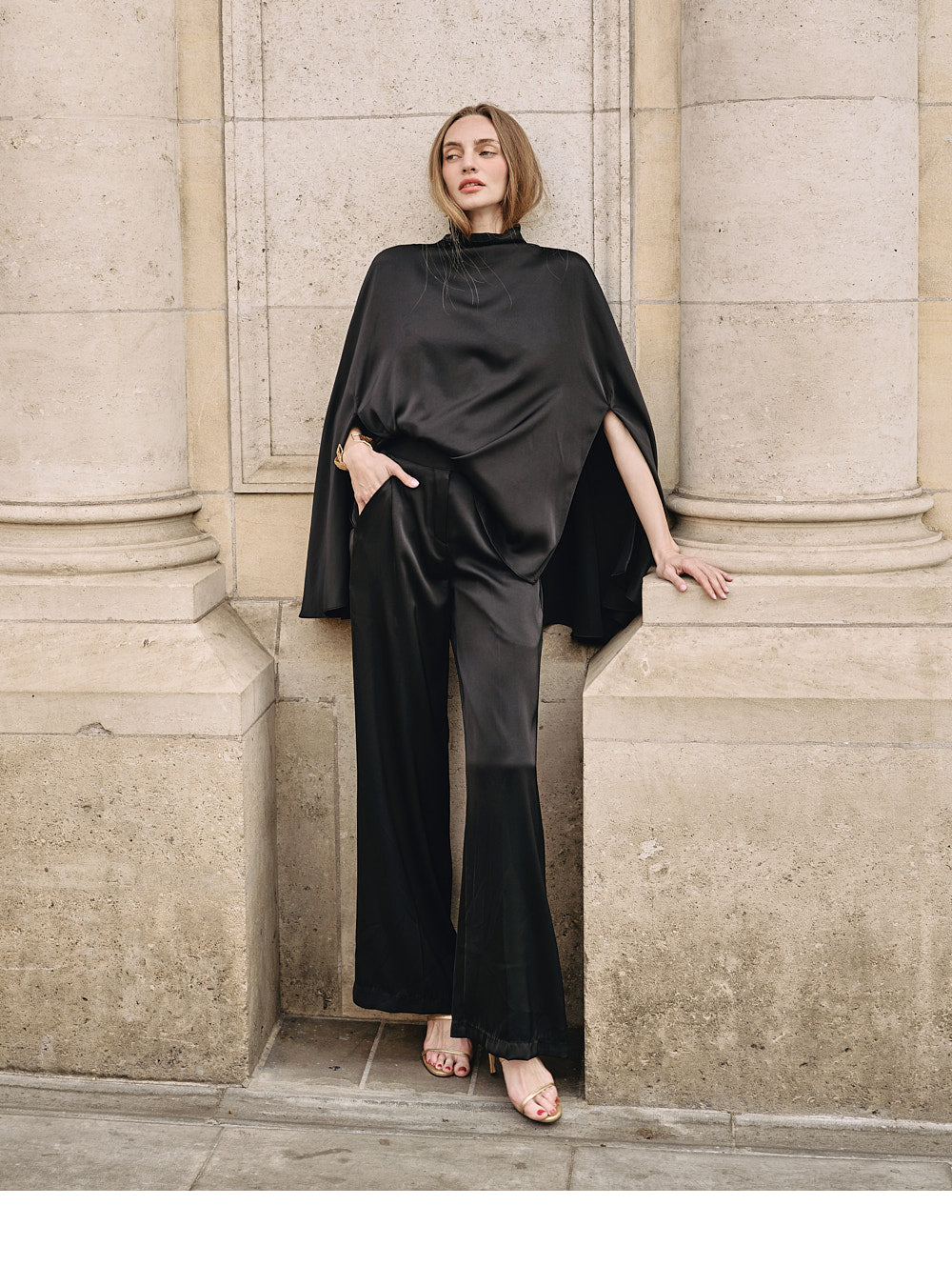 高领口带来优雅的感觉,轻盈的斗篷设计。