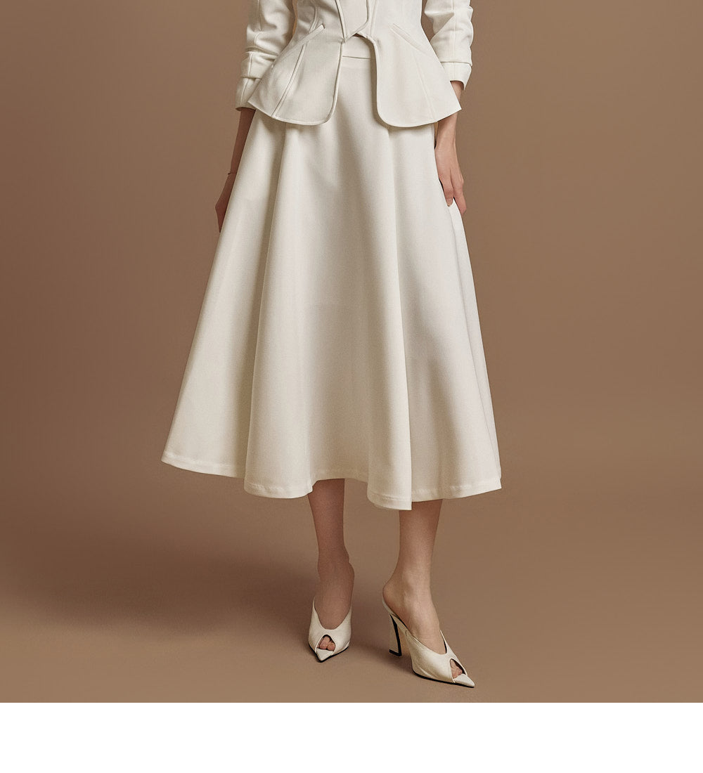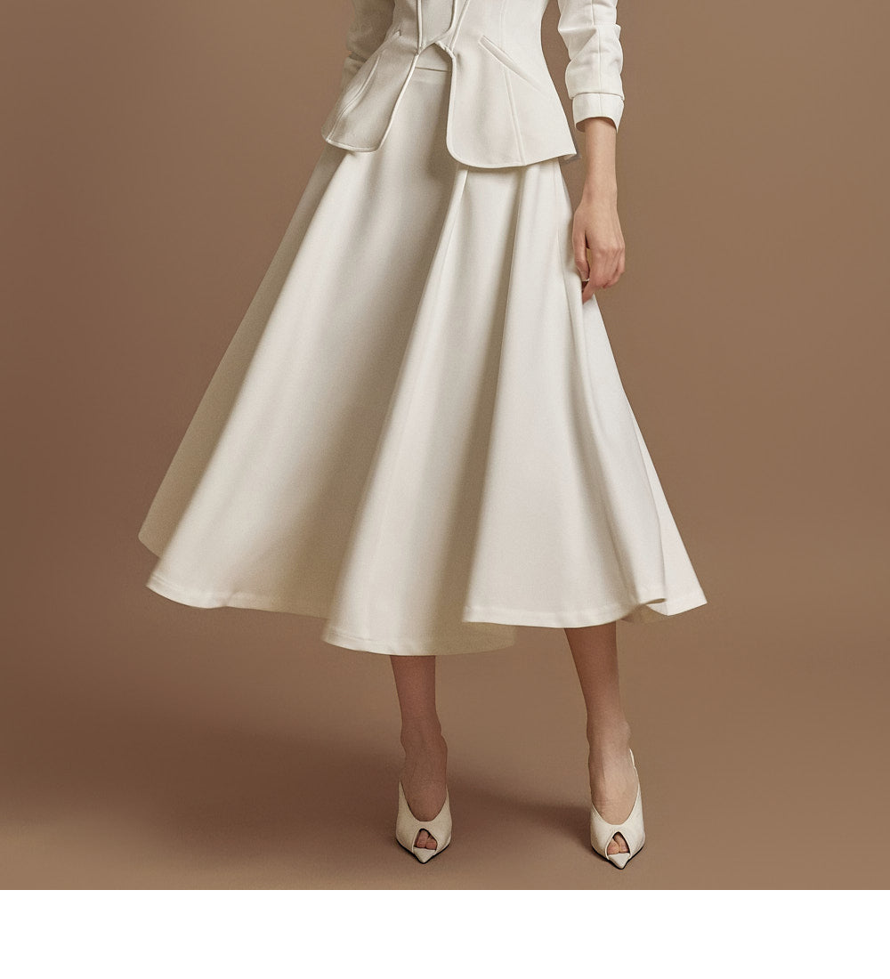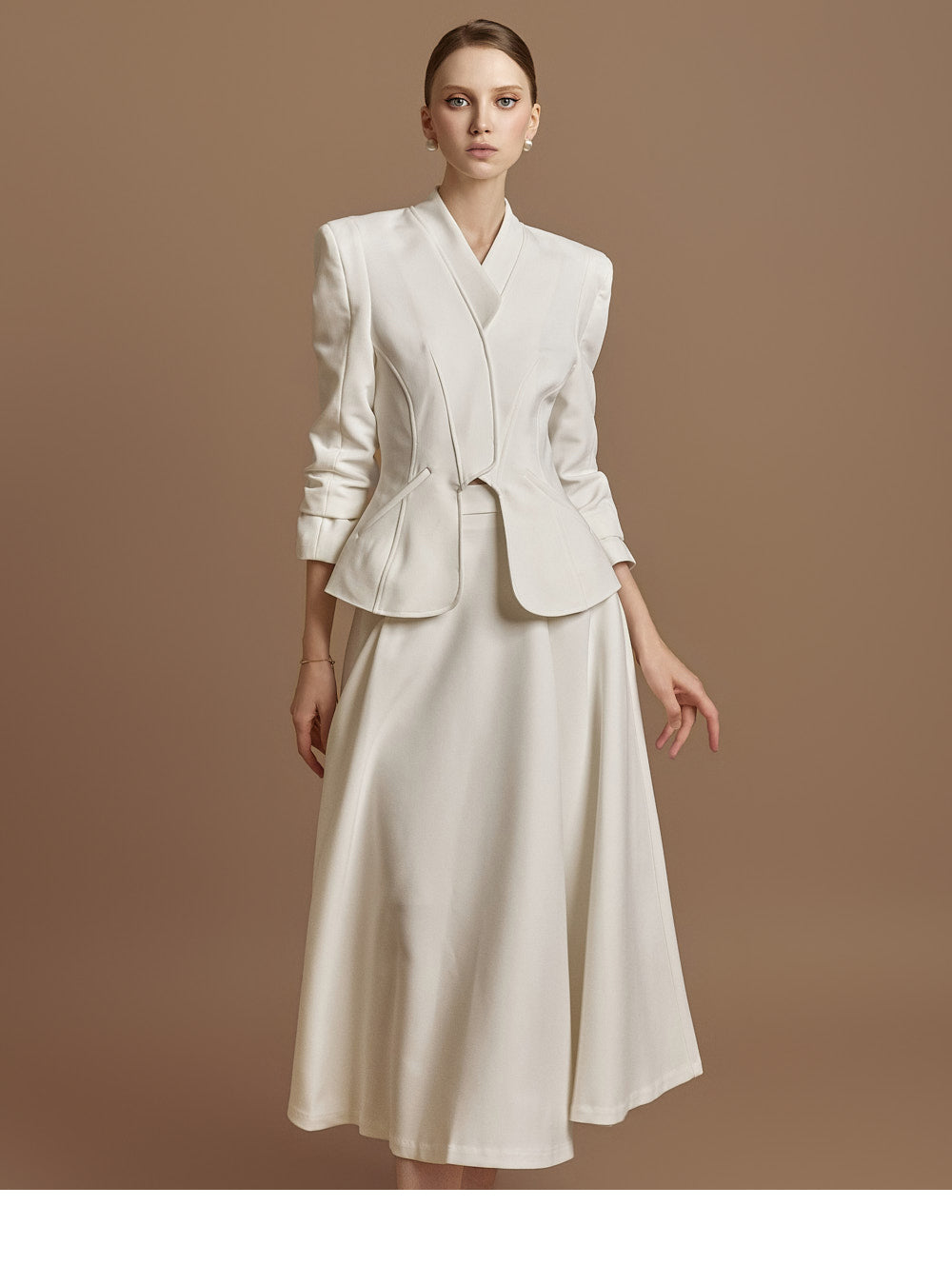 This elegant jacket and skirt set is crafted