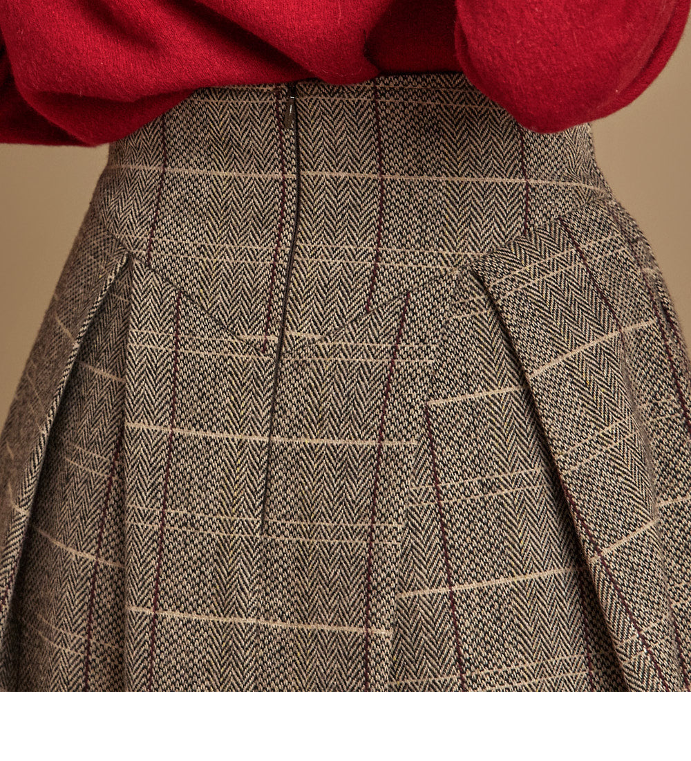 The skirt features a slim waistline and pintuck details,