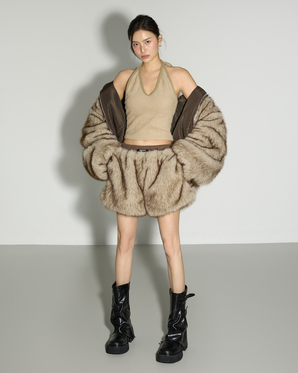 The short length pairs well with the fur jumper,
